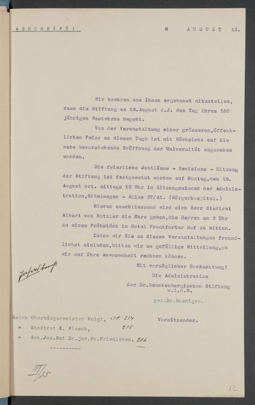 V48 Dr. Senckenbergische Stiftung, 338 - 150-Jahr-Feier der Stiftung