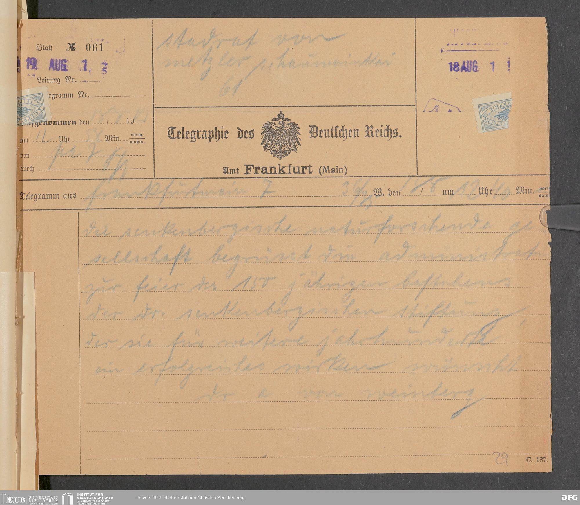 V48 Dr. Senckenbergische Stiftung, 338 - 150-Jahr-Feier der Stiftung