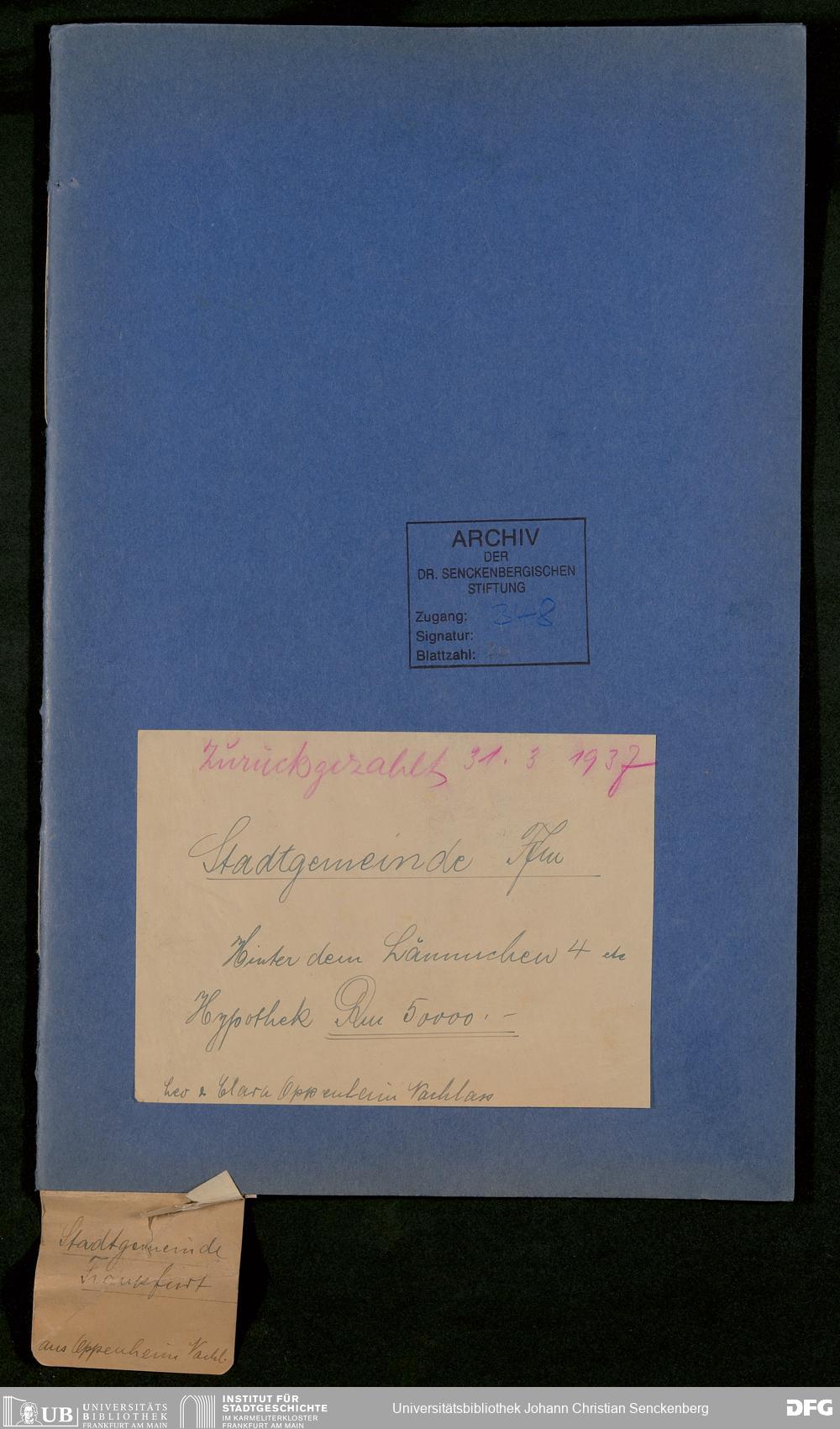 V48 Dr. Senckenbergische Stiftung, 348 - Hypotheken auf den Liegenschaften Braubachstraße 25 und 27, Hinter dem Lämmchen 2, 4 und 6 sowie Neugasse 3 und 5