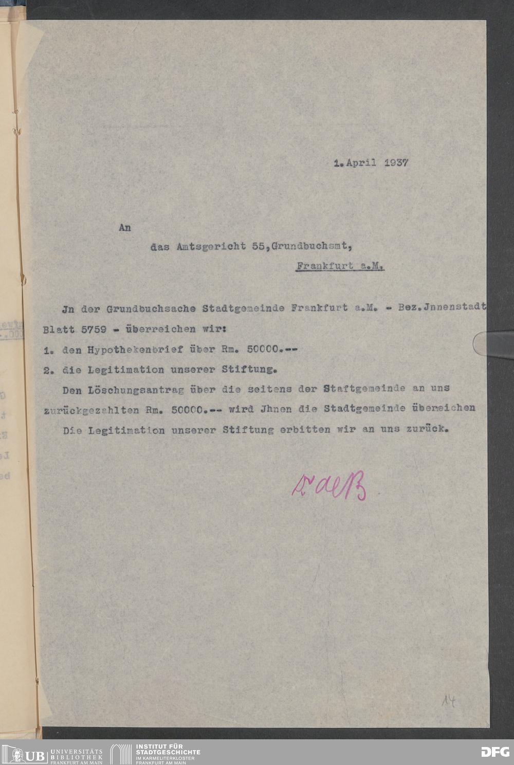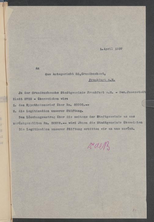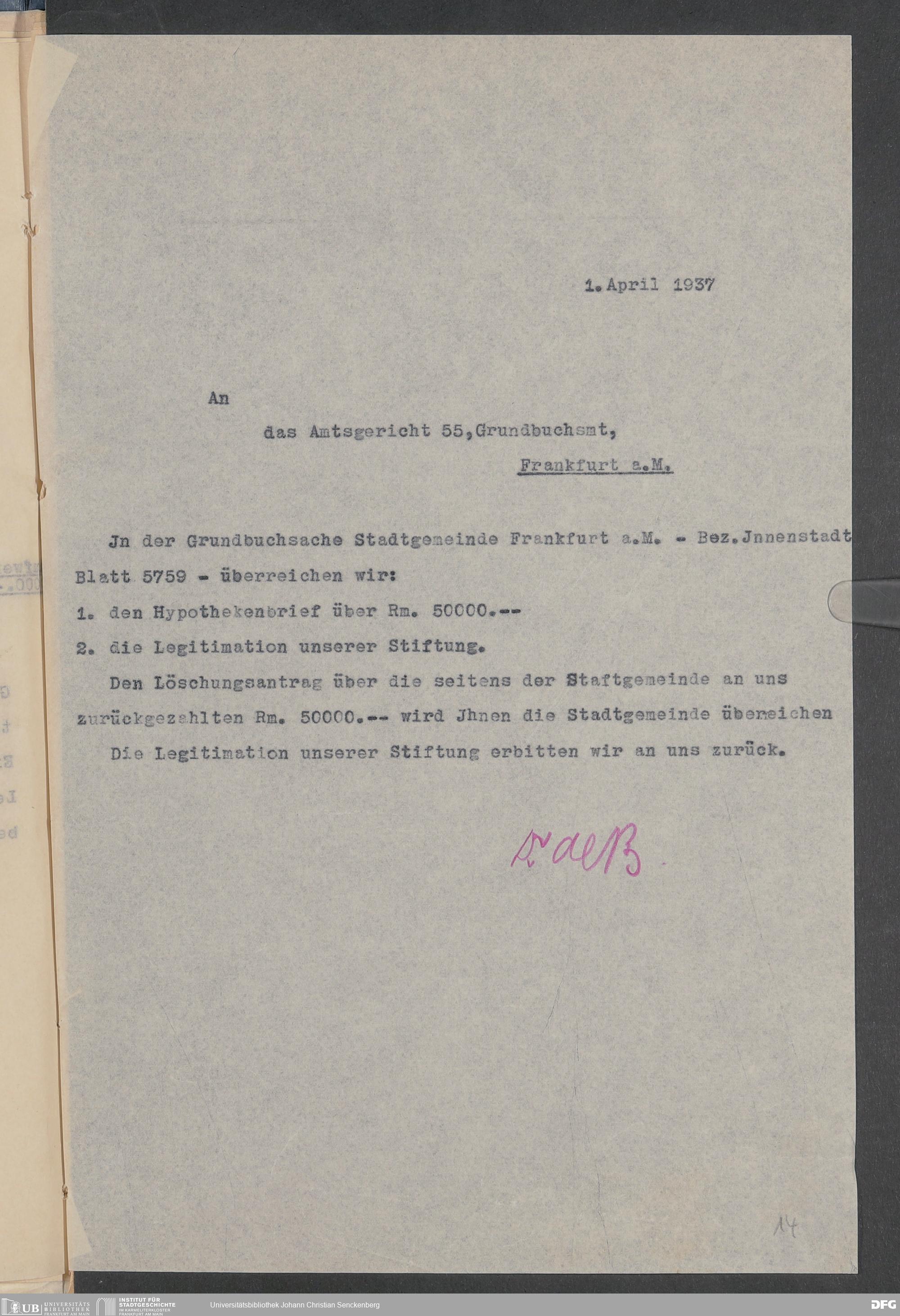 V48 Dr. Senckenbergische Stiftung, 348 - Hypotheken auf den Liegenschaften Braubachstraße 25 und 27, Hinter dem Lämmchen 2, 4 und 6 sowie Neugasse 3 und 5