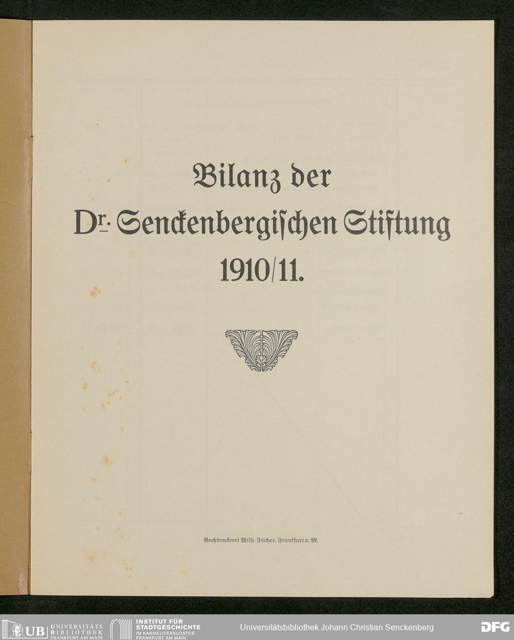 V48 Dr. Senckenbergische Stiftung, 350 - ... Bilanzen, 1910-1912