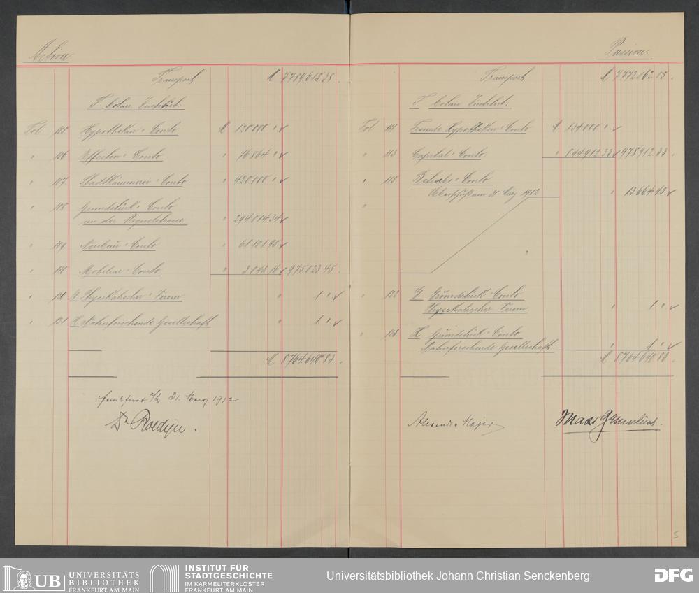 V48 Dr. Senckenbergische Stiftung, 350 - ... Bilanzen, 1910-1912