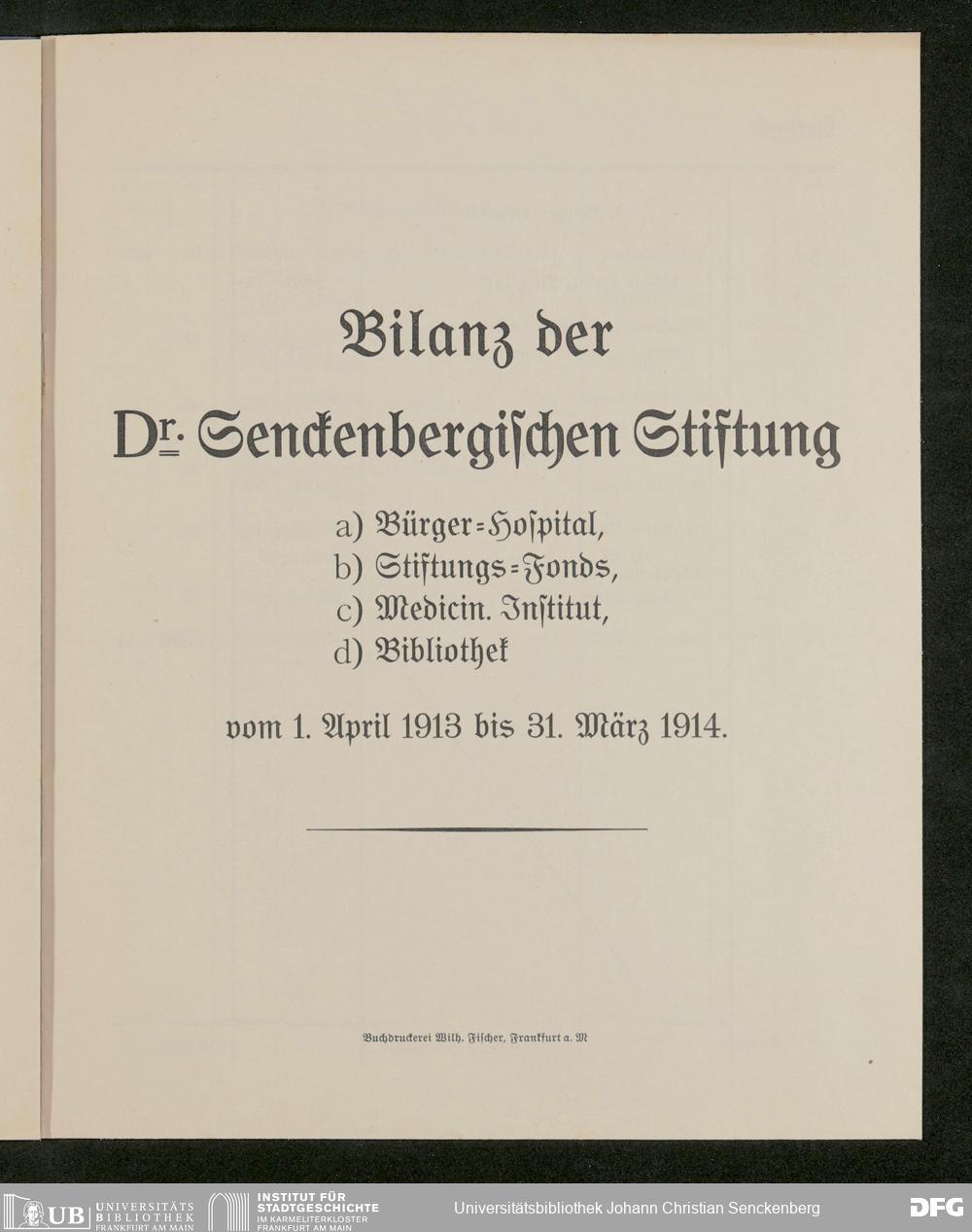 V48 Dr. Senckenbergische Stiftung, 351 - ... Bilanzen, 1912-1914