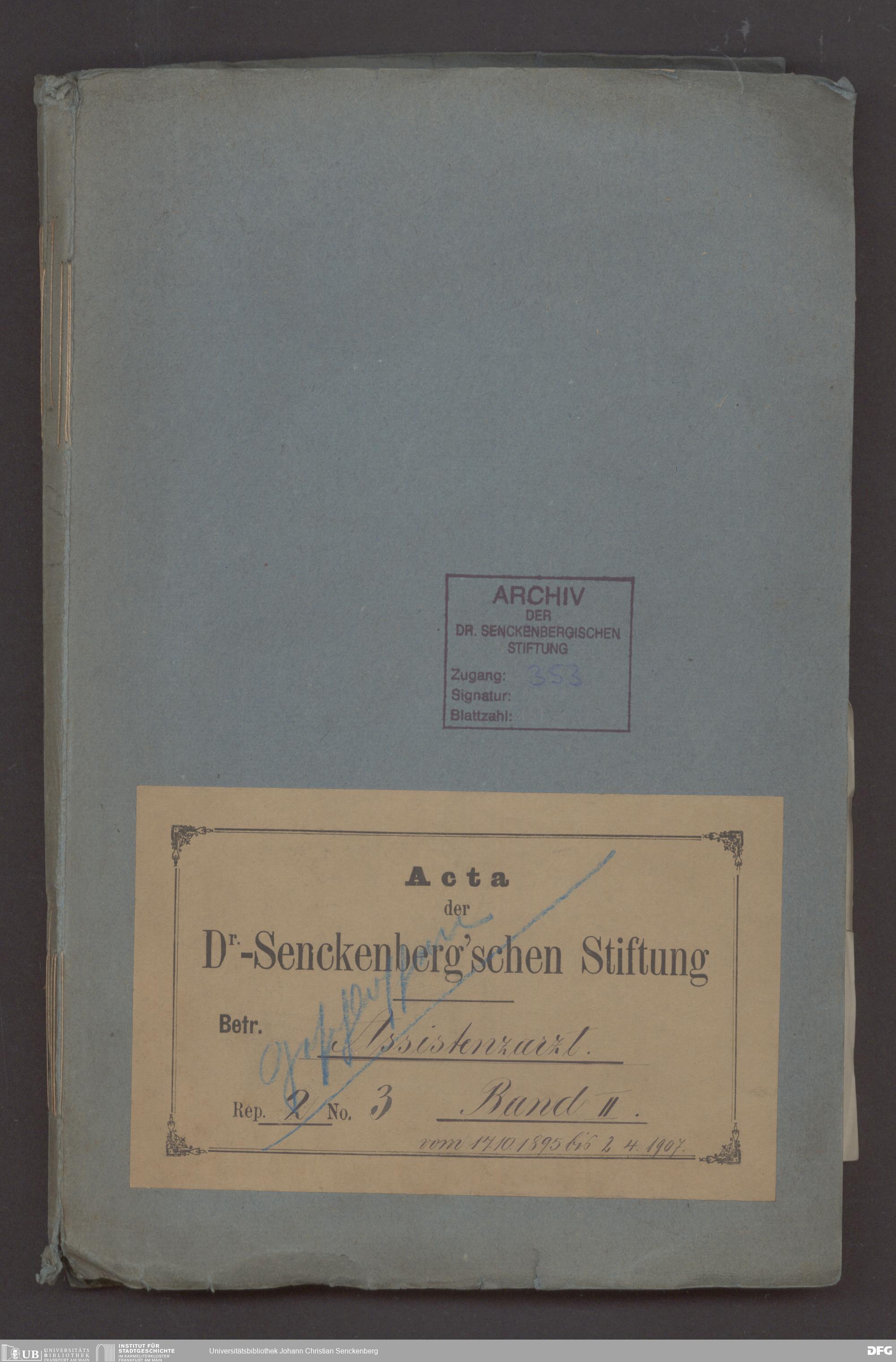 V48 Dr. Senckenbergische Stiftung, 353 - ... Assistenzärzte, Bd. 2