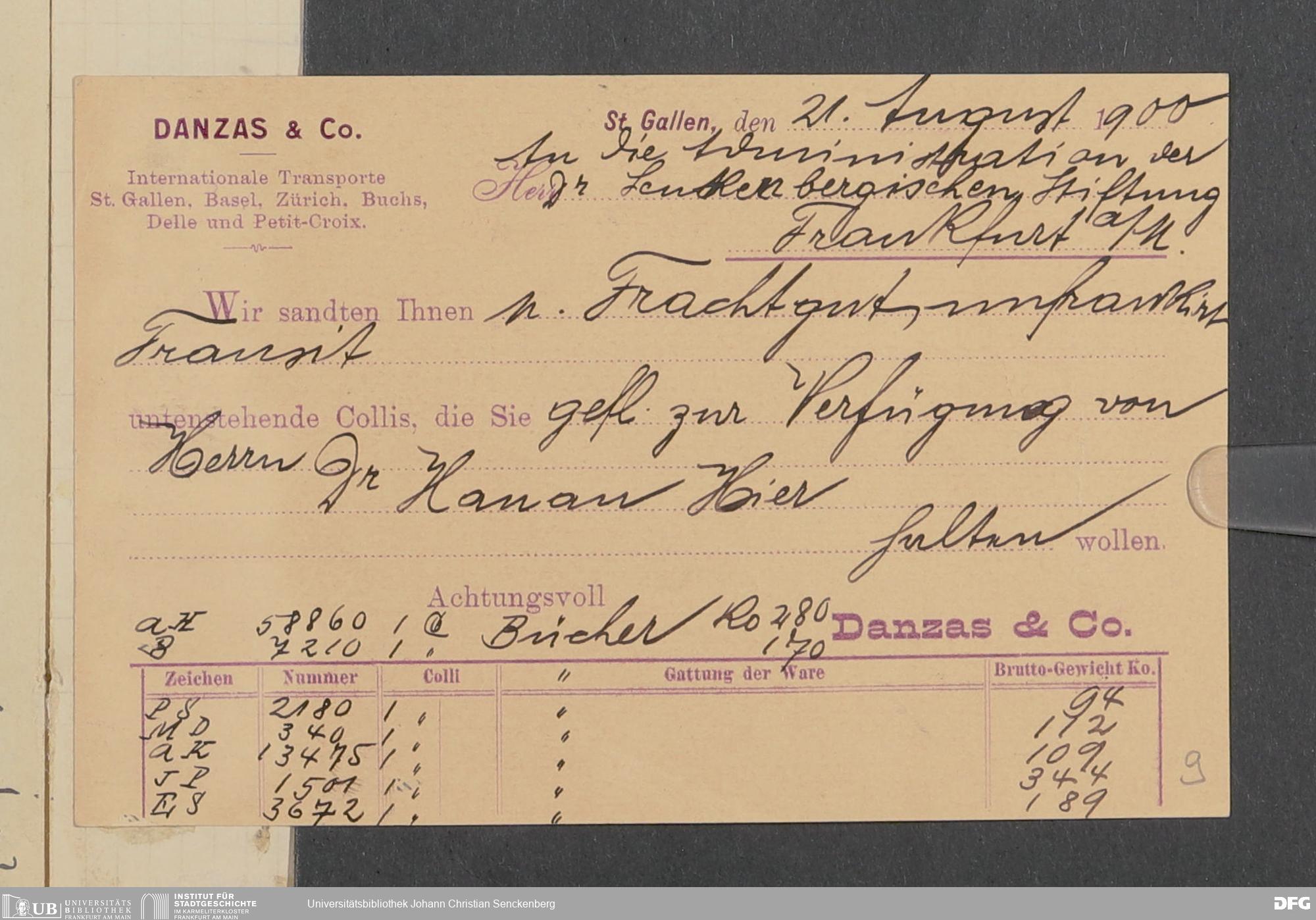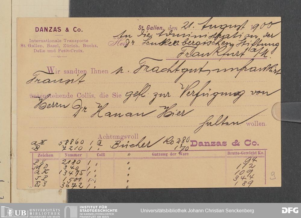 V48 Dr. Senckenbergische Stiftung, 378 - Vermächtnis von Dr. med. Arthur Hanau für das Senckenbergische Pathologische Institut