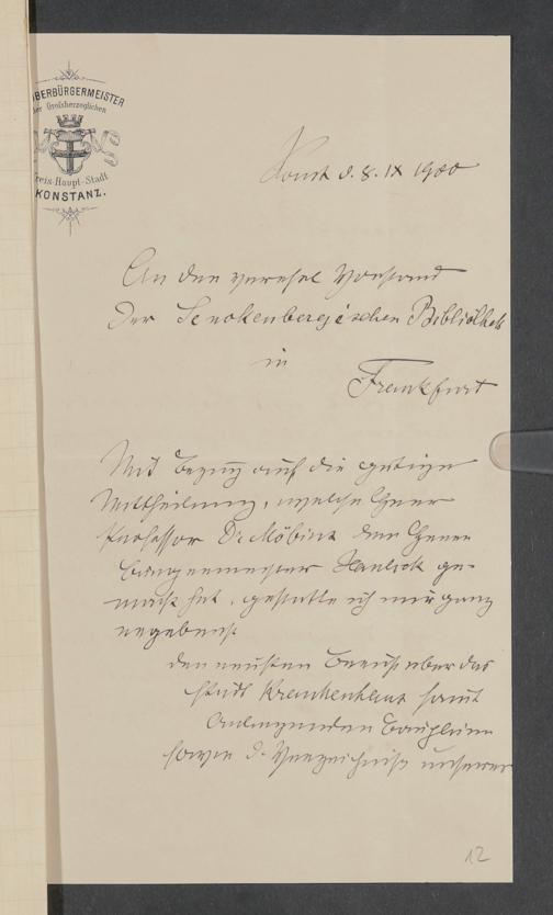 V48 Dr. Senckenbergische Stiftung, 378 - Vermächtnis von Dr. med. Arthur Hanau für das Senckenbergische Pathologische Institut