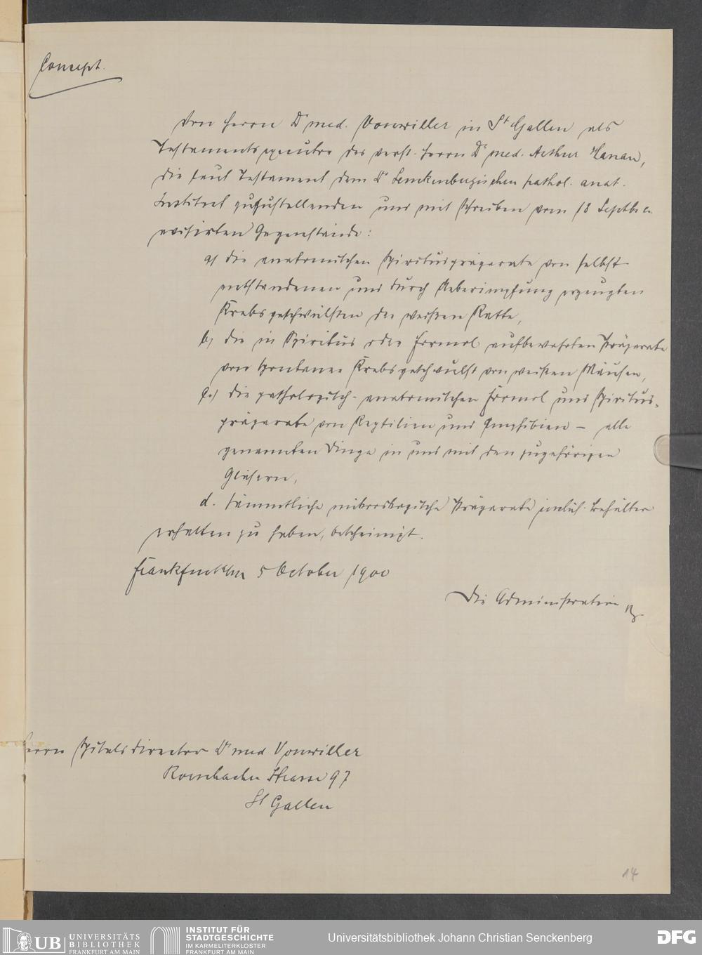V48 Dr. Senckenbergische Stiftung, 378 - Vermächtnis von Dr. med. Arthur Hanau für das Senckenbergische Pathologische Institut