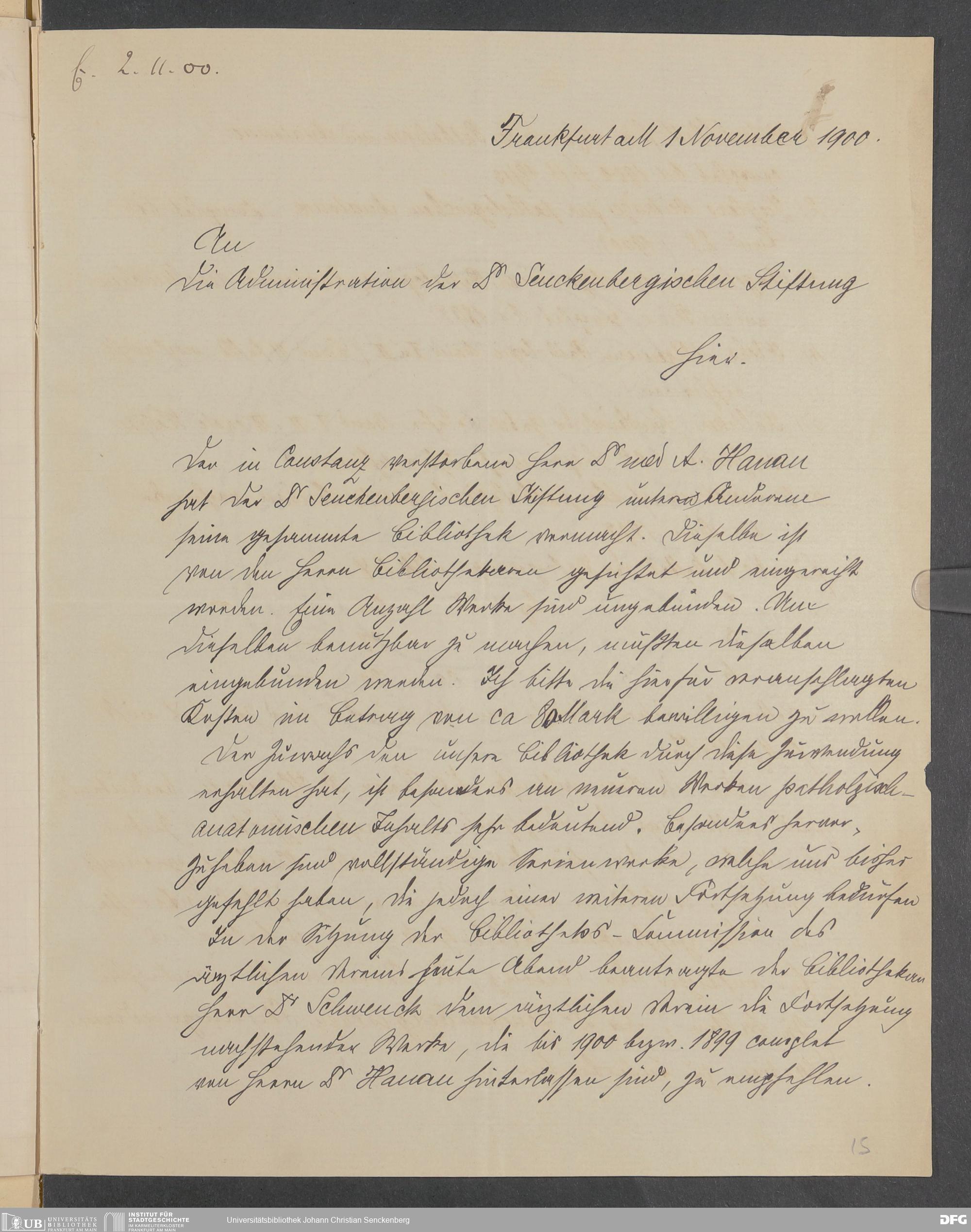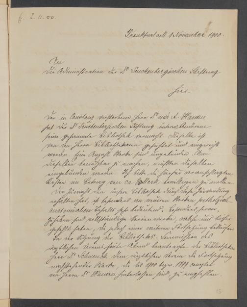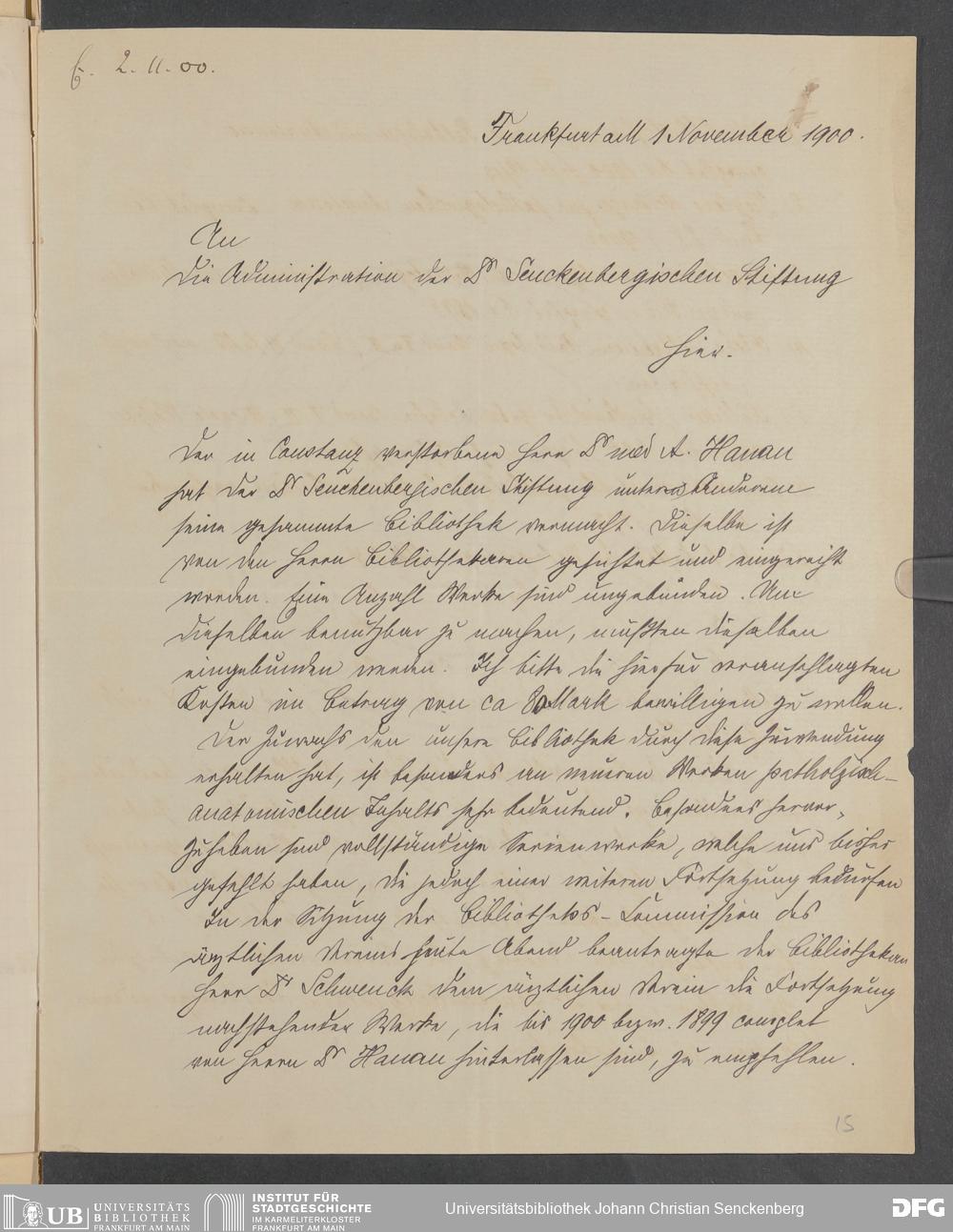 V48 Dr. Senckenbergische Stiftung, 378 - Vermächtnis von Dr. med. Arthur Hanau für das Senckenbergische Pathologische Institut
