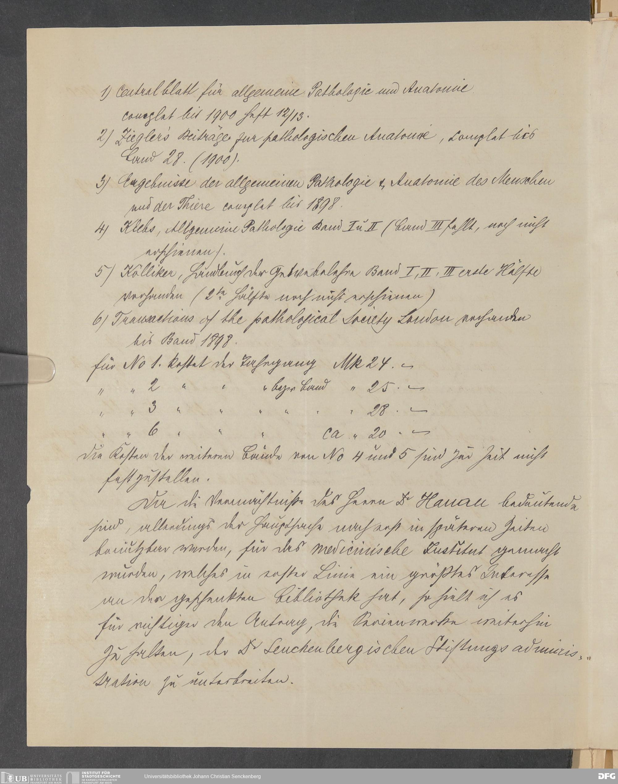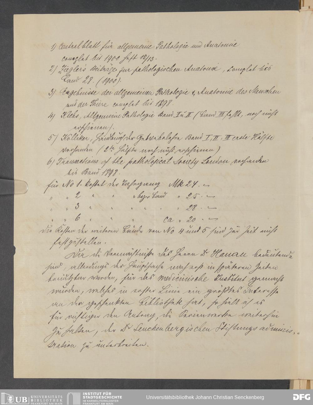V48 Dr. Senckenbergische Stiftung, 378 - Vermächtnis von Dr. med. Arthur Hanau für das Senckenbergische Pathologische Institut