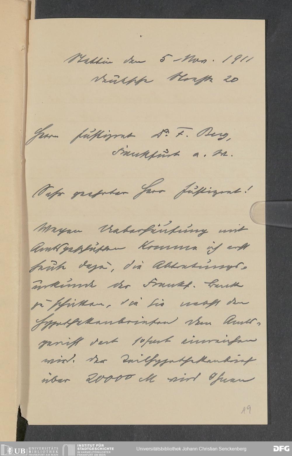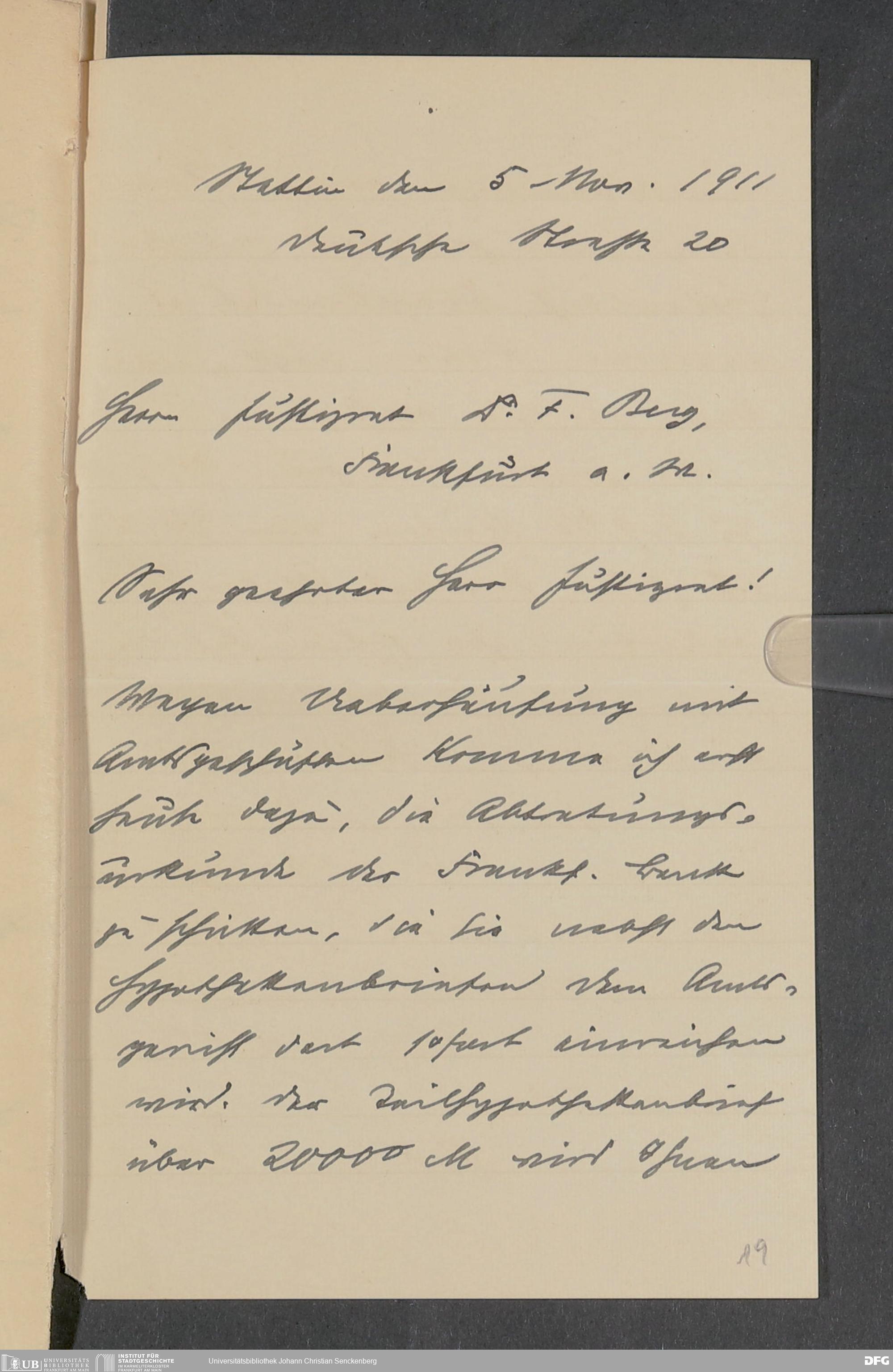 V48 Dr. Senckenbergische Stiftung, 378 - Vermächtnis von Dr. med. Arthur Hanau für das Senckenbergische Pathologische Institut