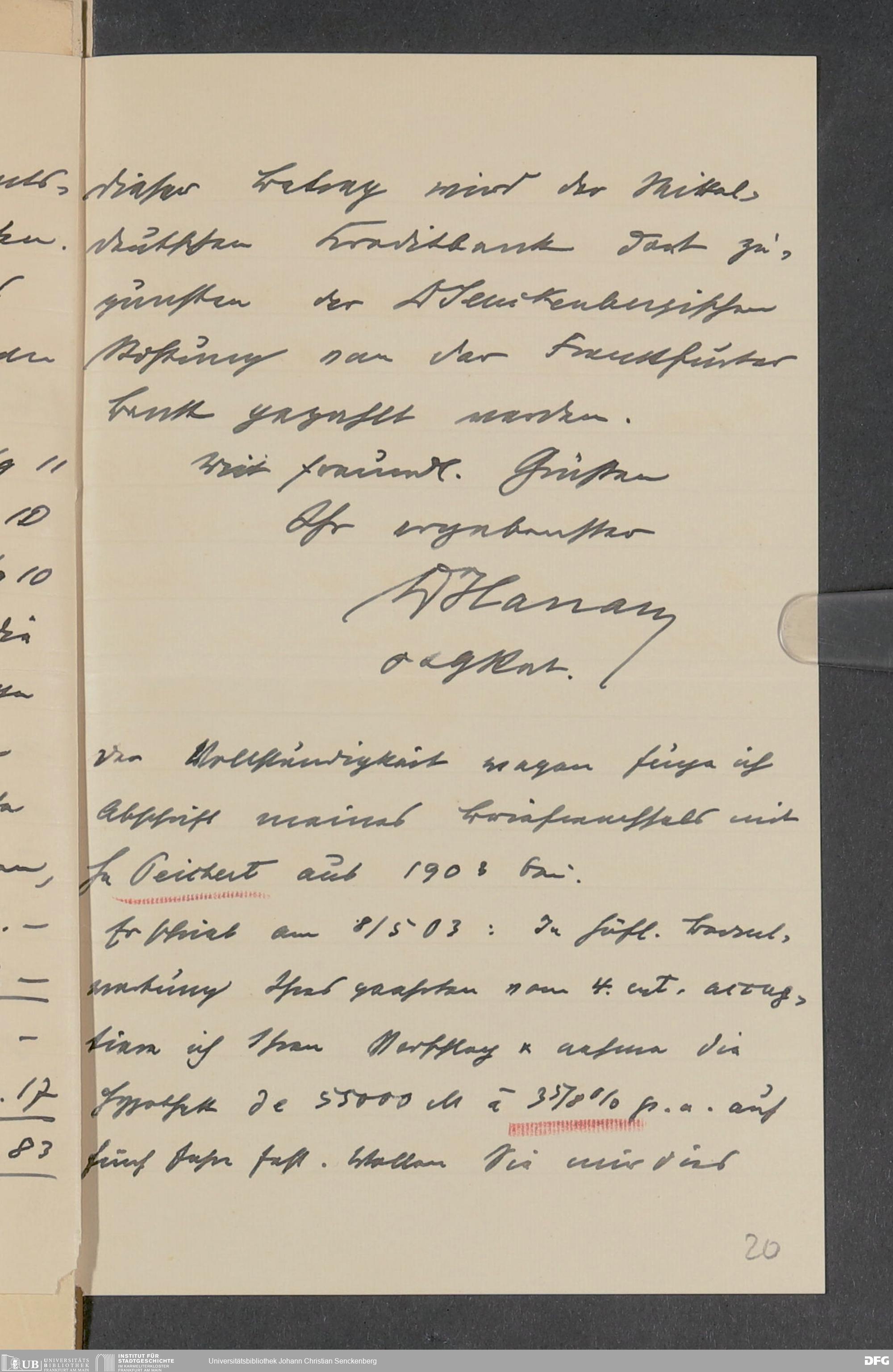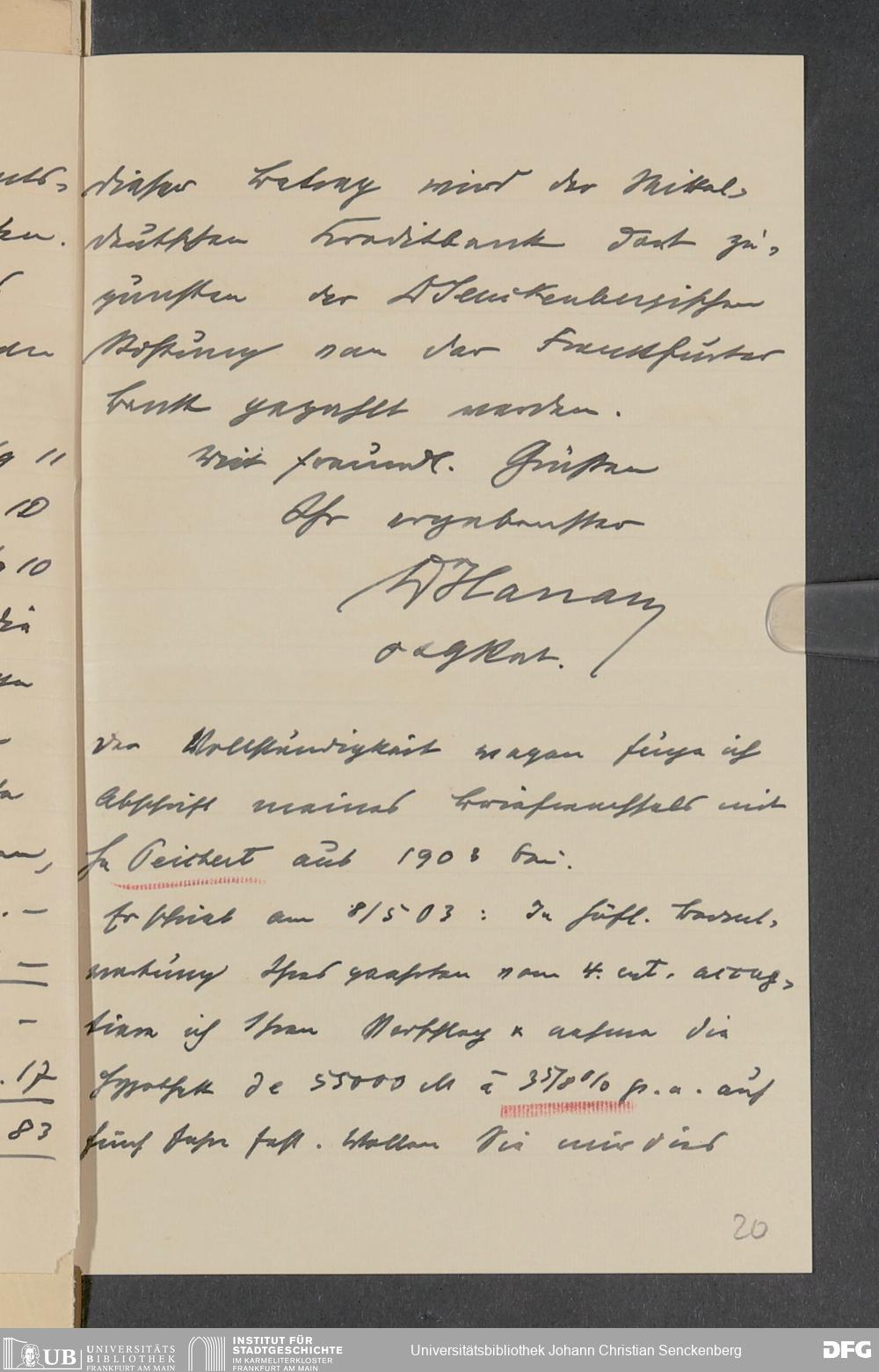 V48 Dr. Senckenbergische Stiftung, 378 - Vermächtnis von Dr. med. Arthur Hanau für das Senckenbergische Pathologische Institut