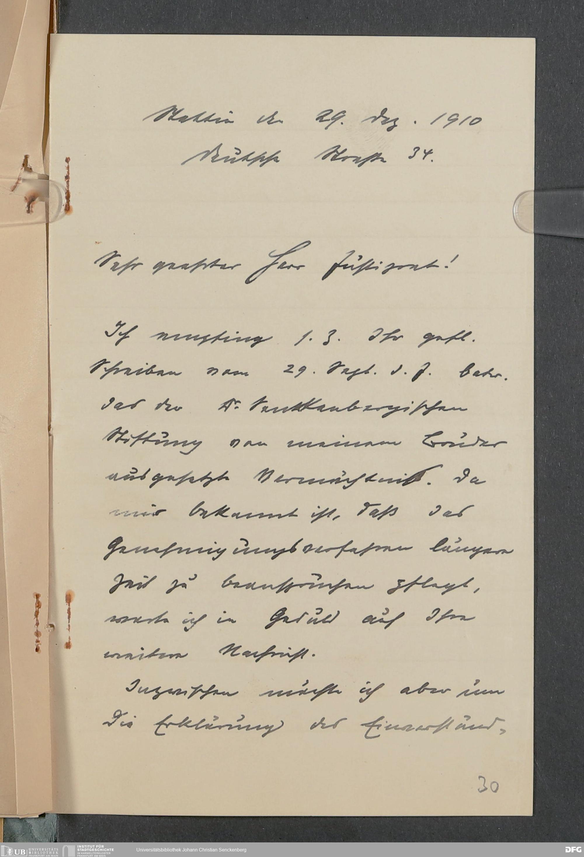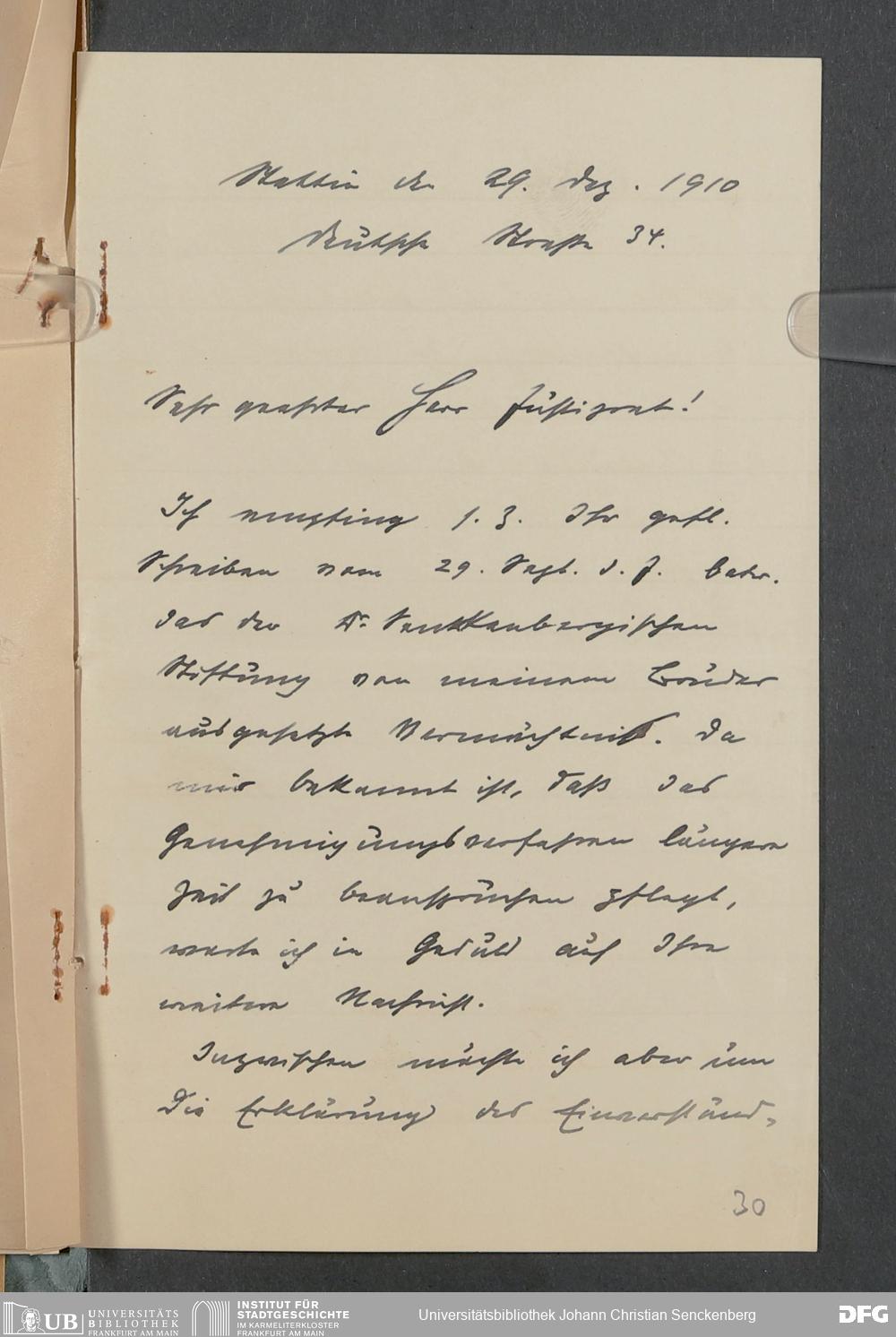 V48 Dr. Senckenbergische Stiftung, 378 - Vermächtnis von Dr. med. Arthur Hanau für das Senckenbergische Pathologische Institut