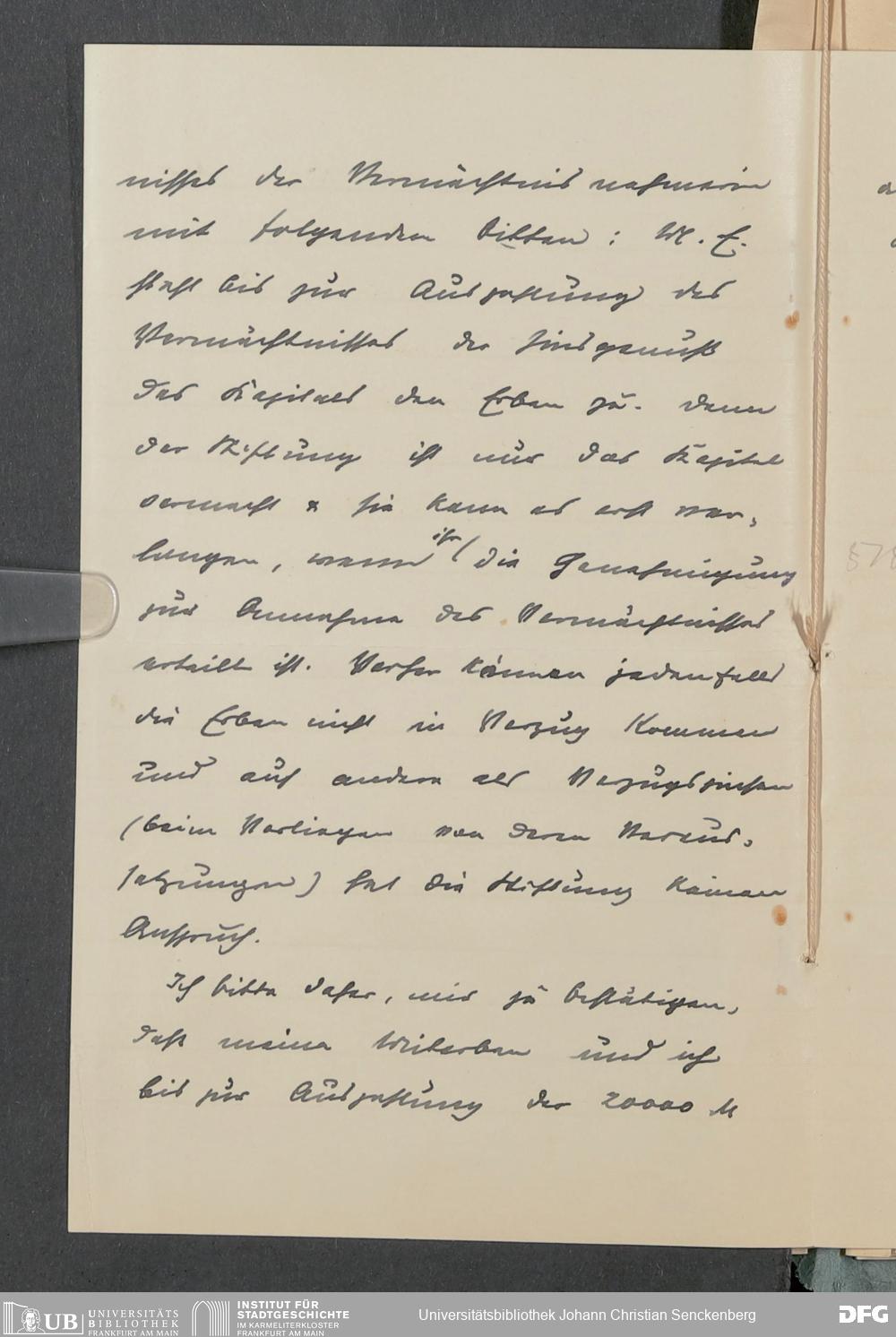 V48 Dr. Senckenbergische Stiftung, 378 - Vermächtnis von Dr. med. Arthur Hanau für das Senckenbergische Pathologische Institut