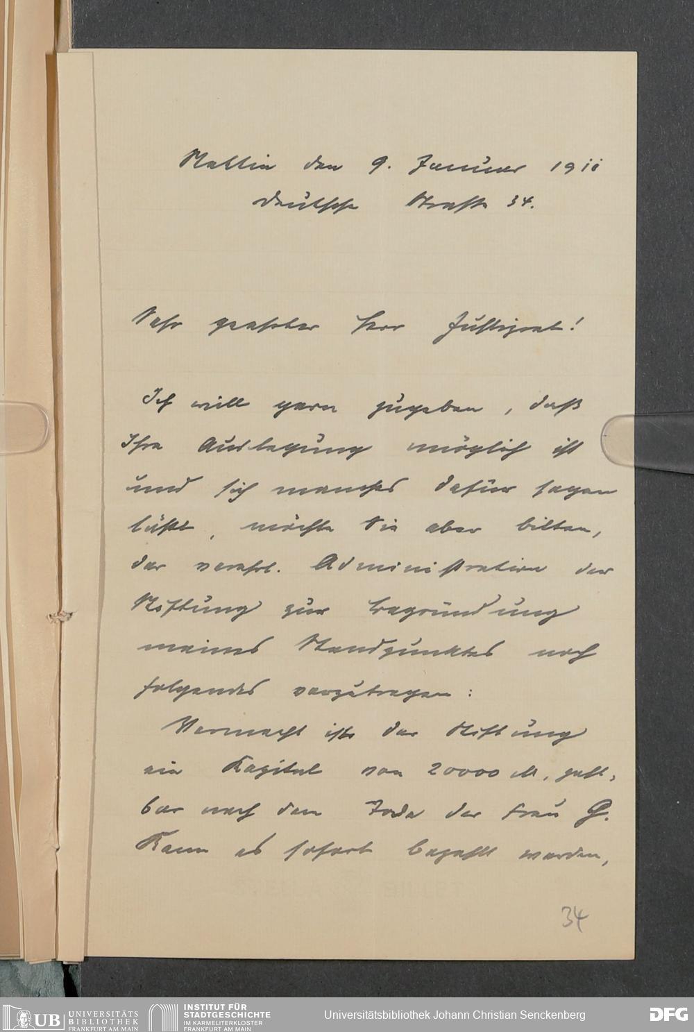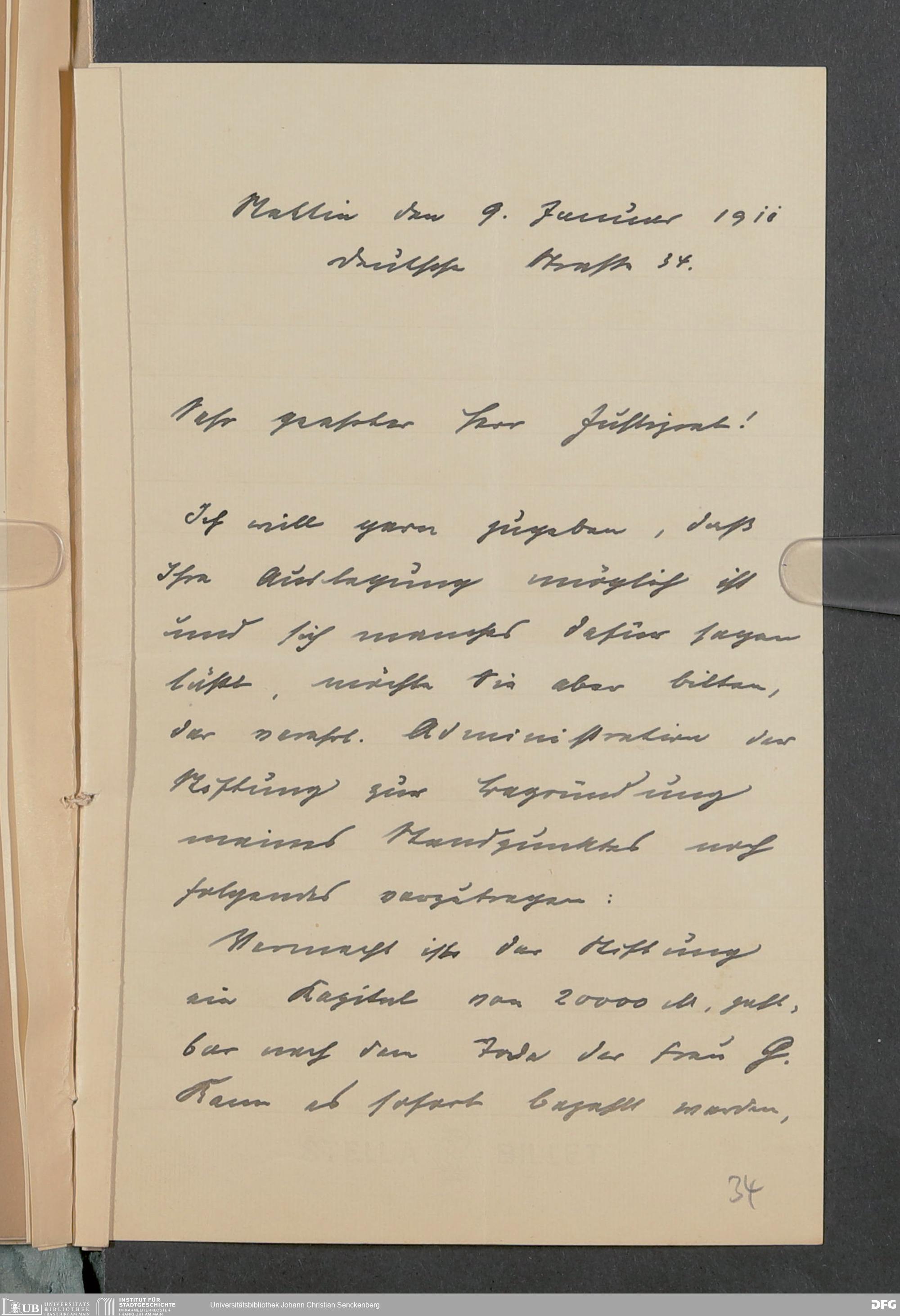 V48 Dr. Senckenbergische Stiftung, 378 - Vermächtnis von Dr. med. Arthur Hanau für das Senckenbergische Pathologische Institut