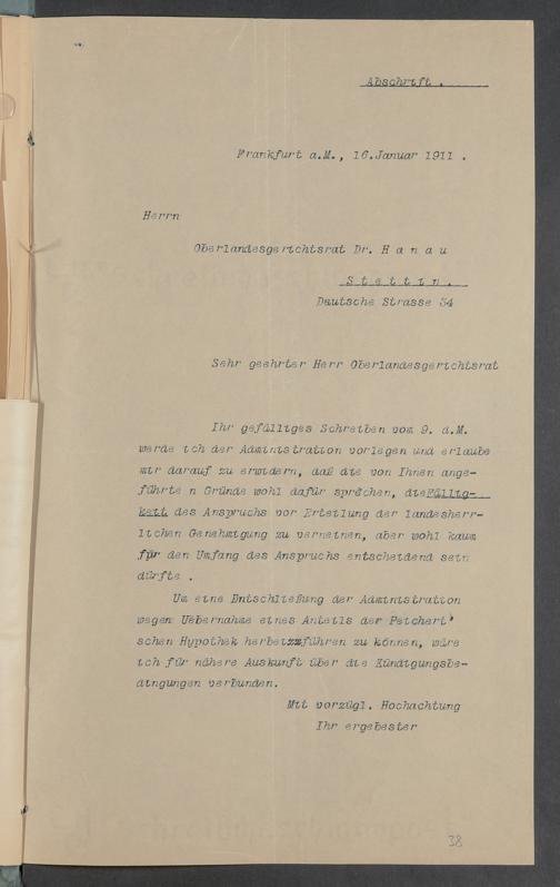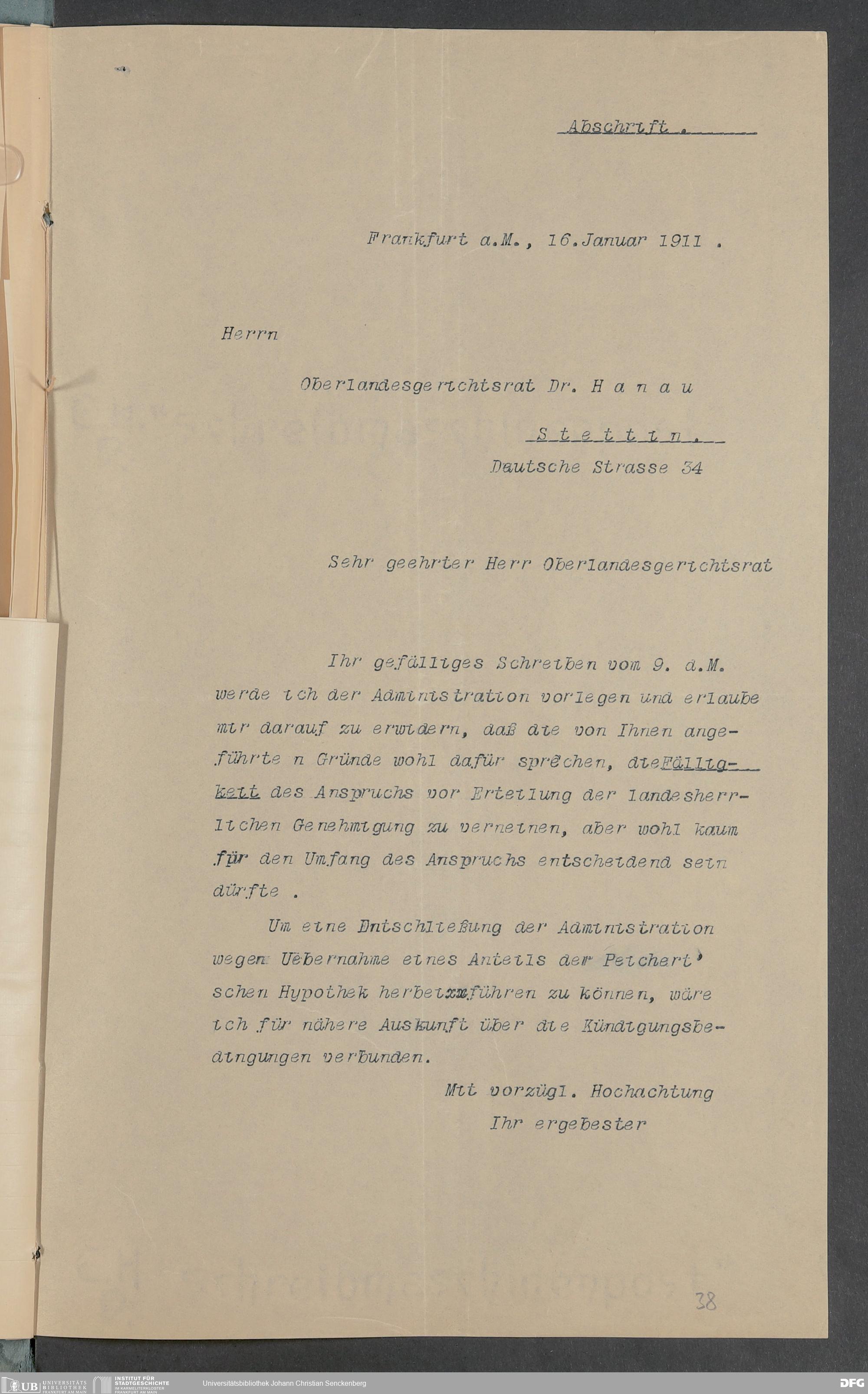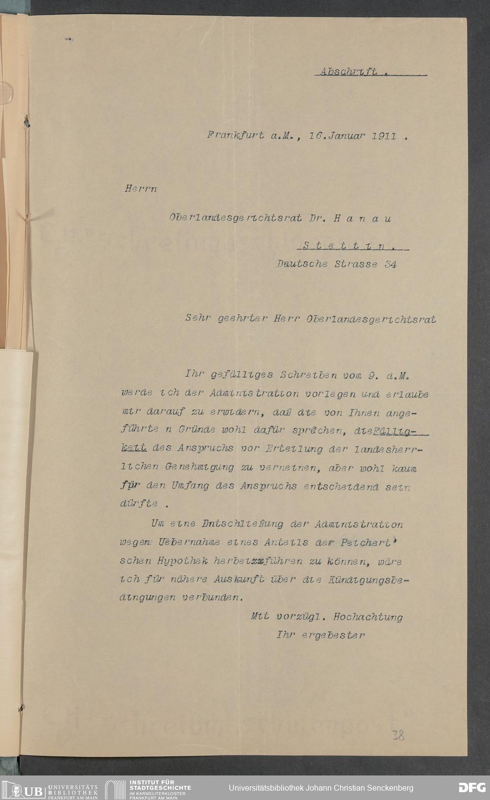 V48 Dr. Senckenbergische Stiftung, 378 - Vermächtnis von Dr. med. Arthur Hanau für das Senckenbergische Pathologische Institut