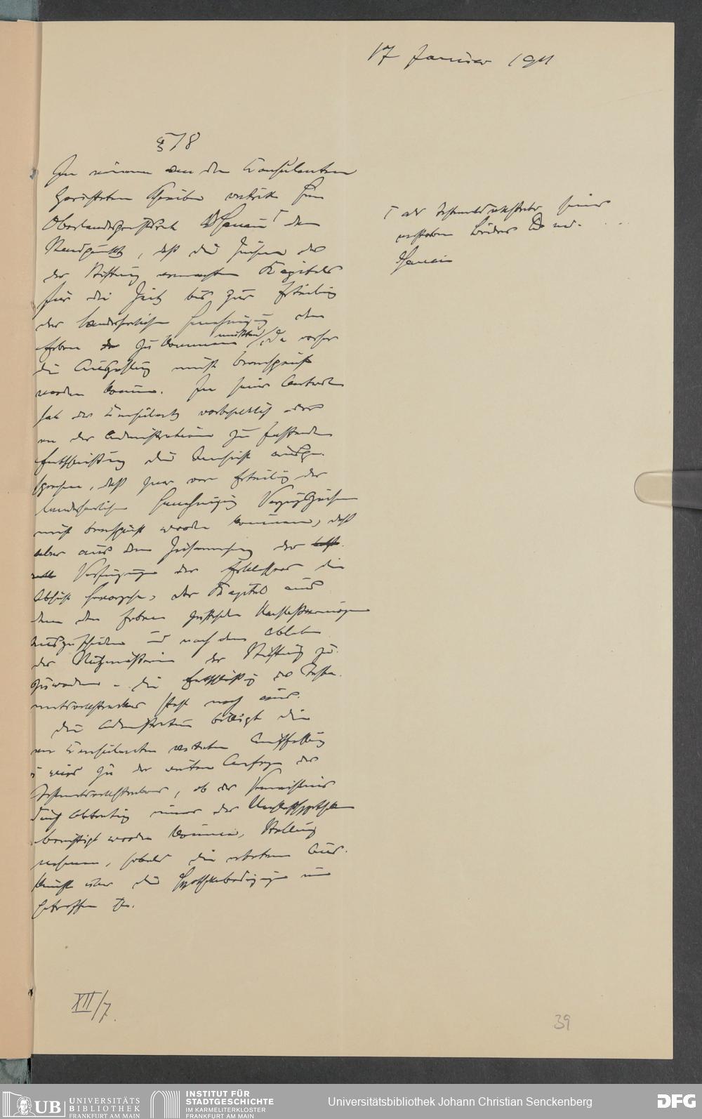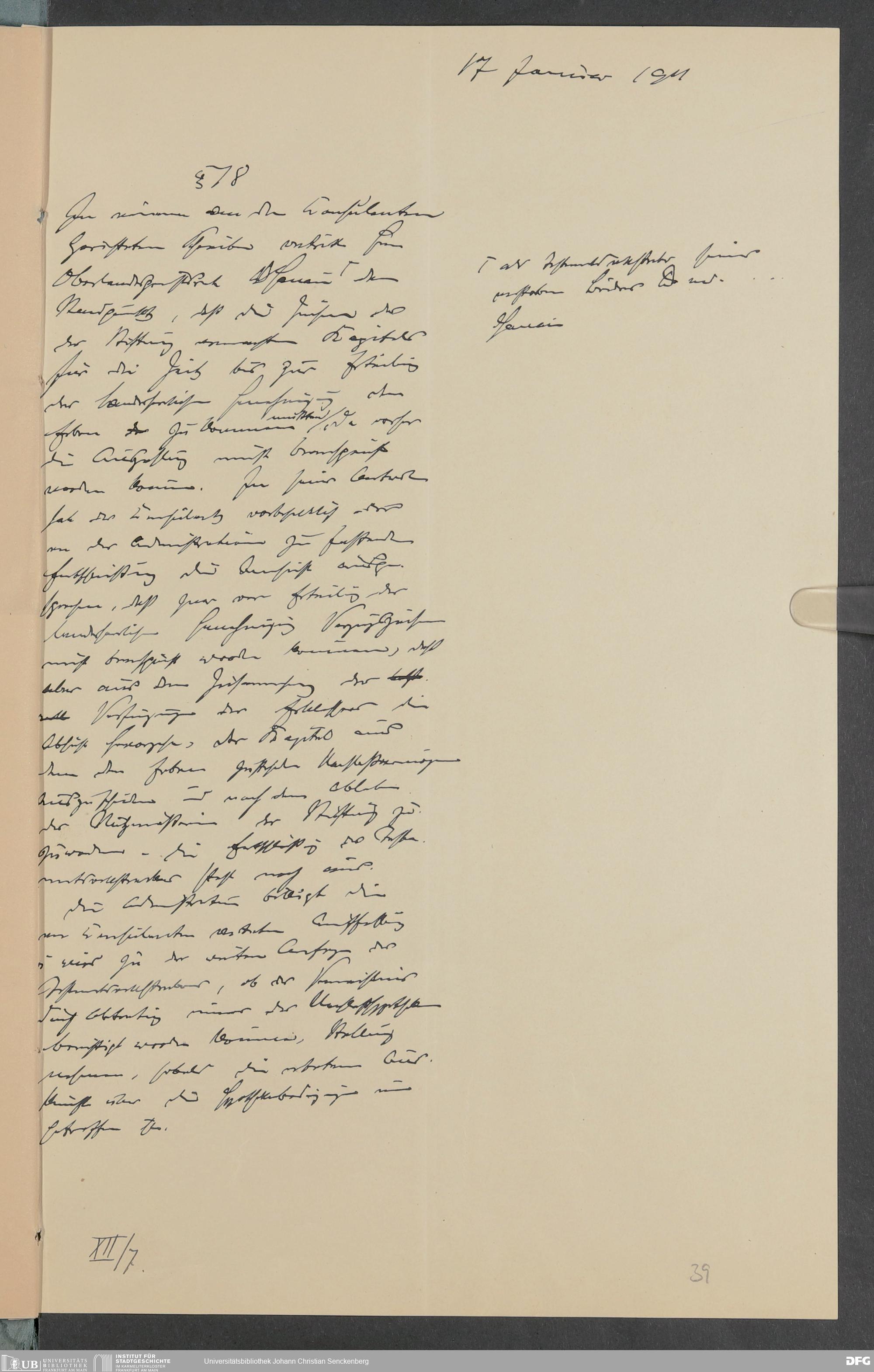 V48 Dr. Senckenbergische Stiftung, 378 - Vermächtnis von Dr. med. Arthur Hanau für das Senckenbergische Pathologische Institut