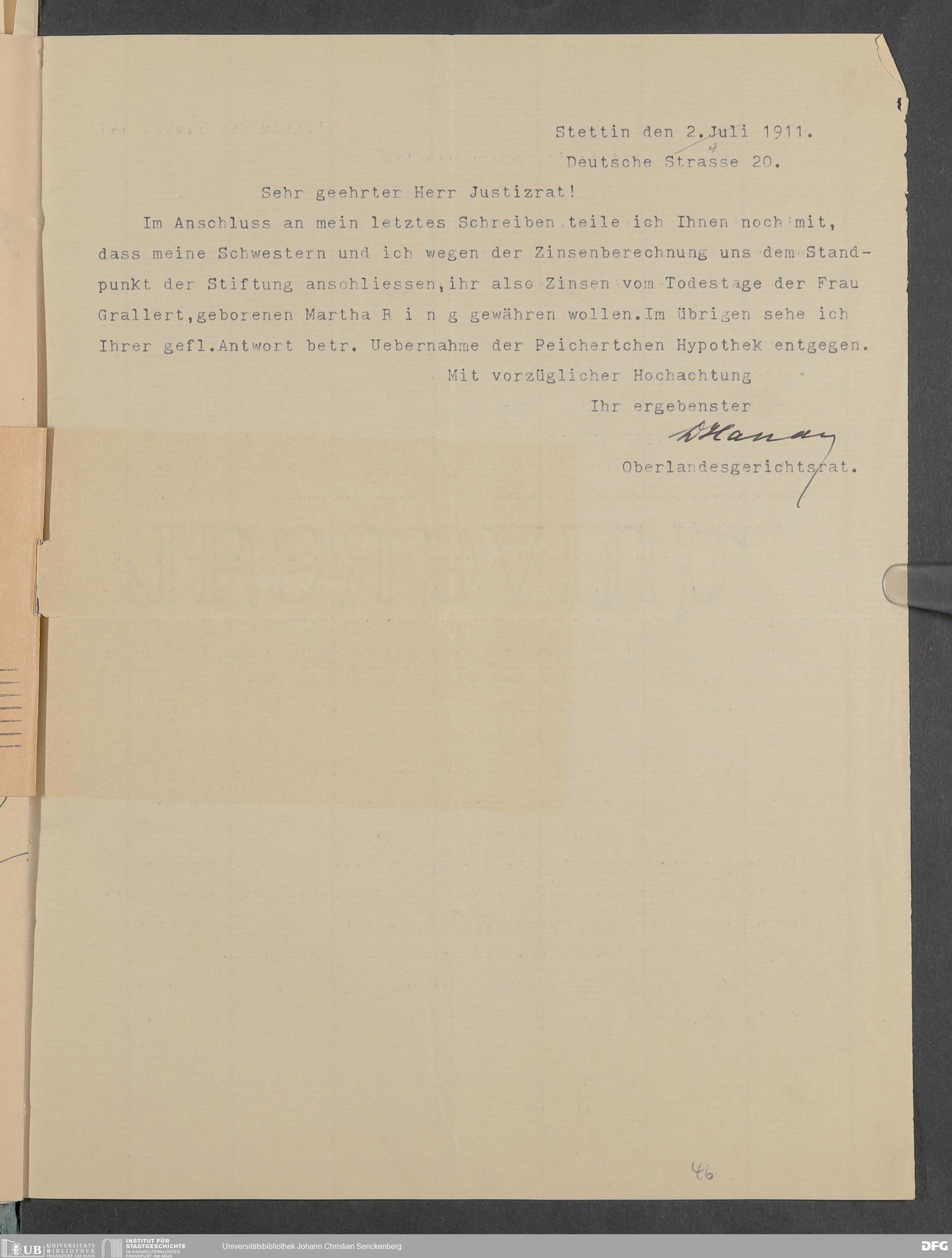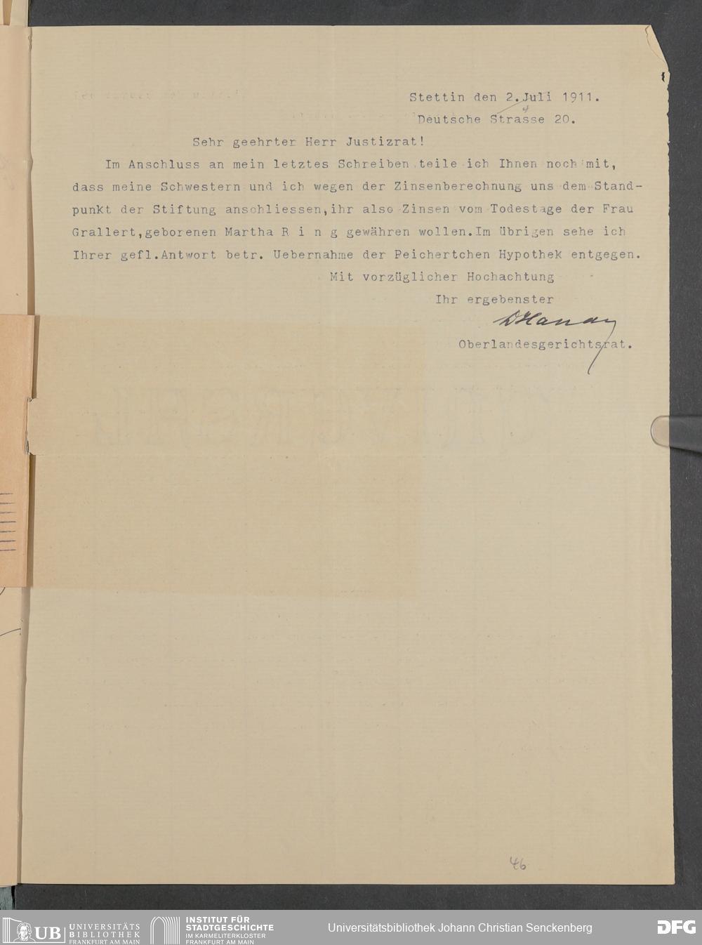 V48 Dr. Senckenbergische Stiftung, 378 - Vermächtnis von Dr. med. Arthur Hanau für das Senckenbergische Pathologische Institut