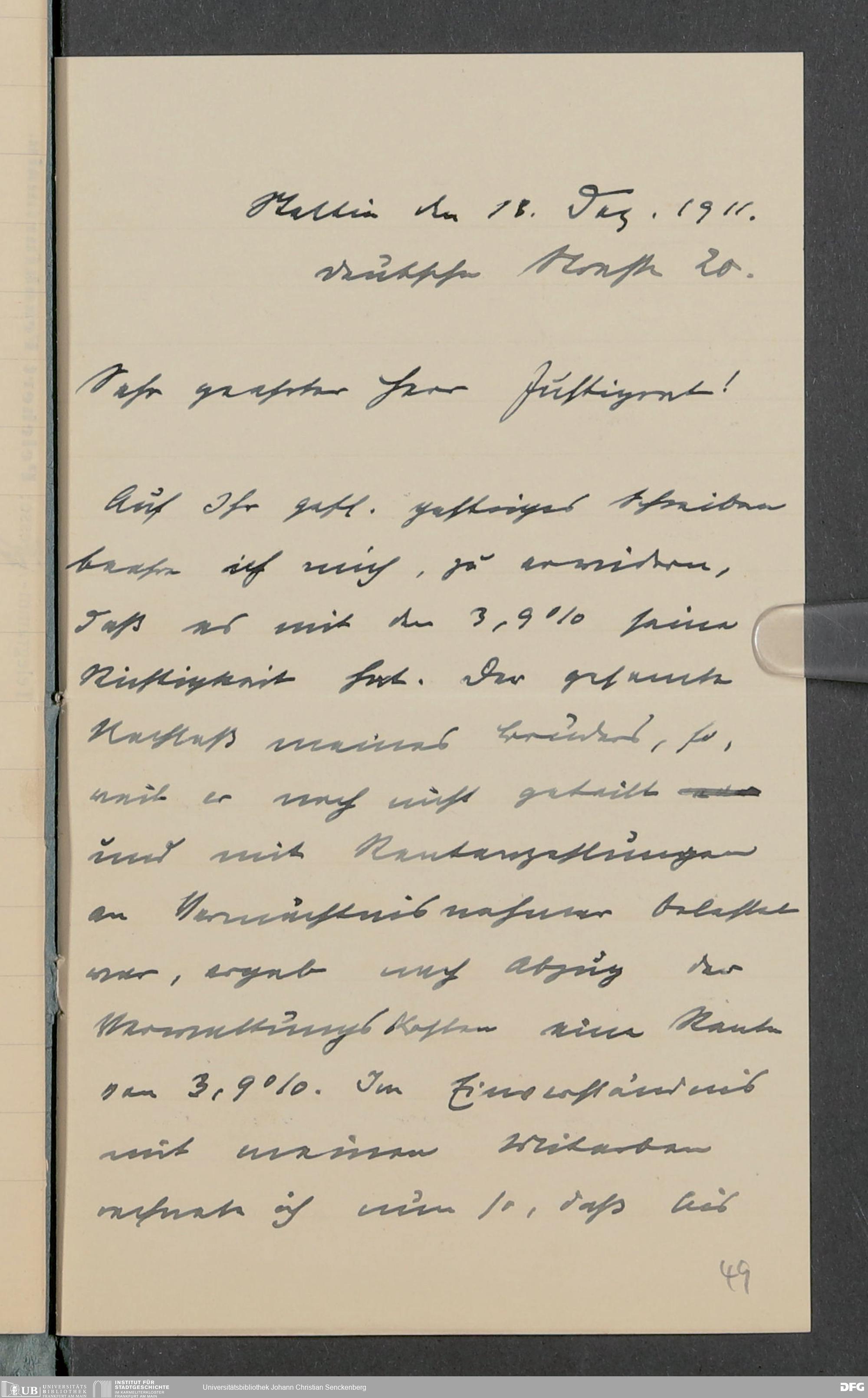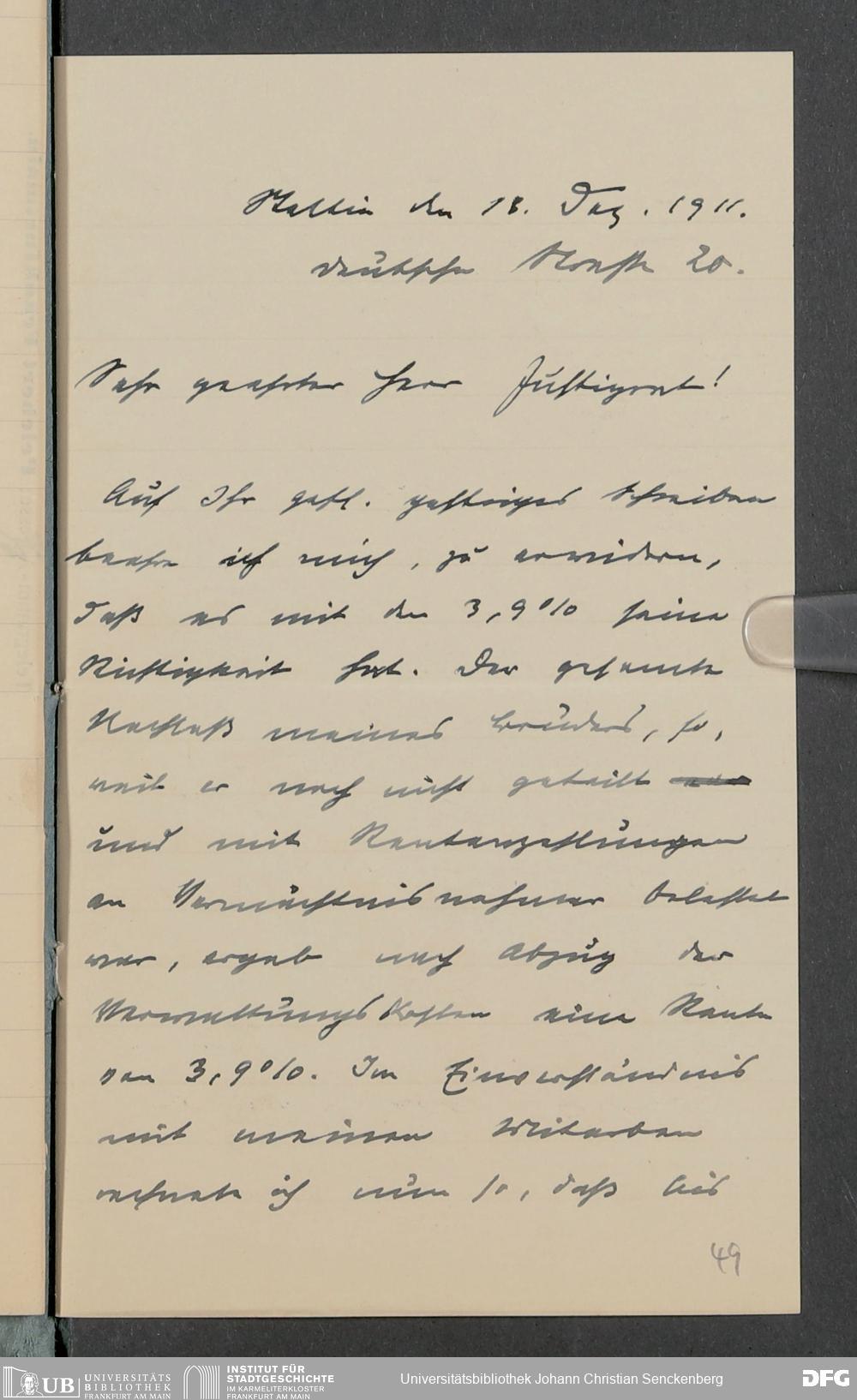 V48 Dr. Senckenbergische Stiftung, 378 - Vermächtnis von Dr. med. Arthur Hanau für das Senckenbergische Pathologische Institut