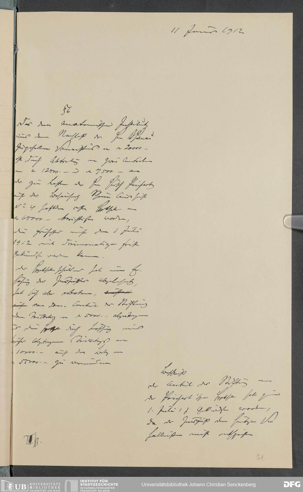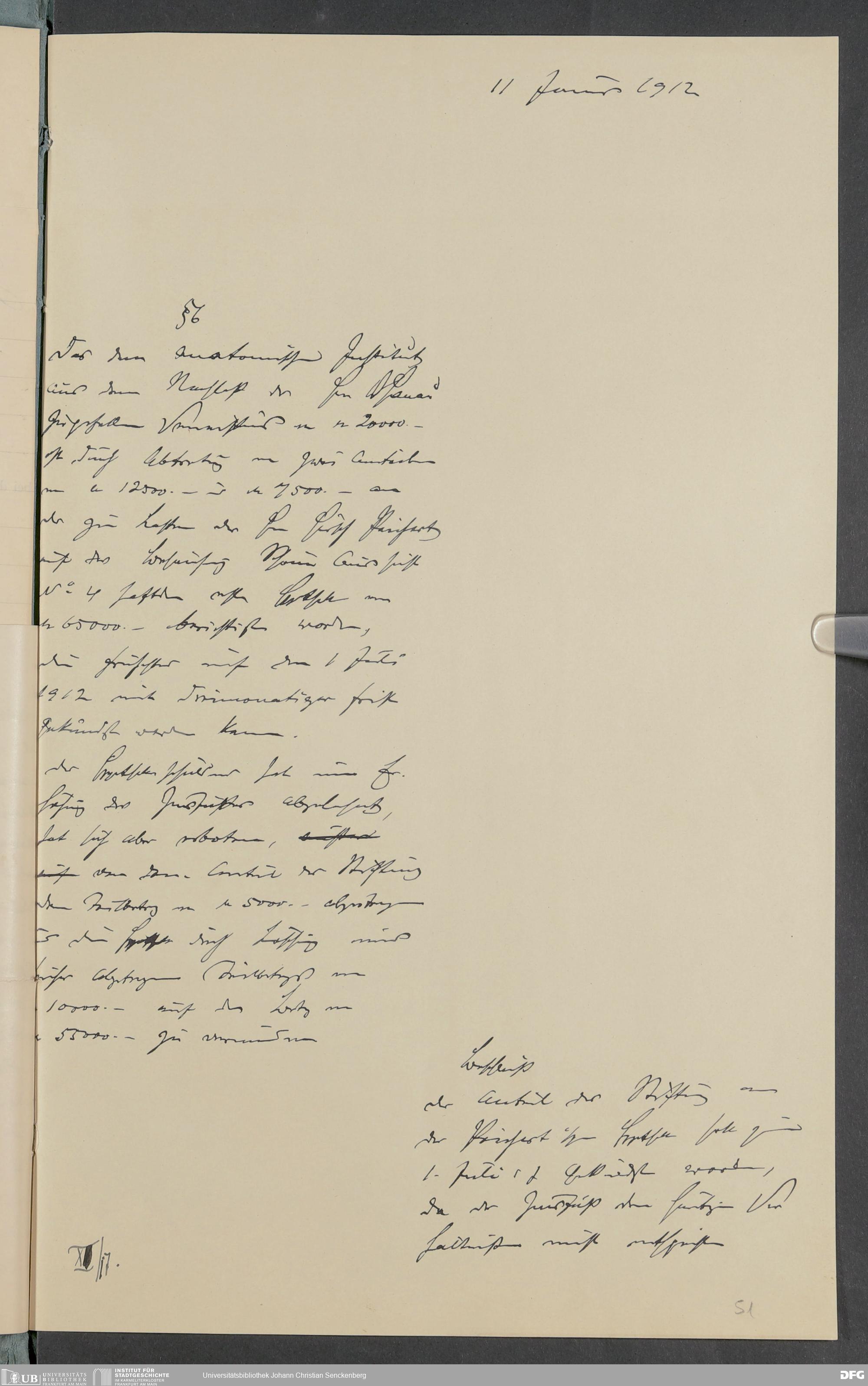 V48 Dr. Senckenbergische Stiftung, 378 - Vermächtnis von Dr. med. Arthur Hanau für das Senckenbergische Pathologische Institut