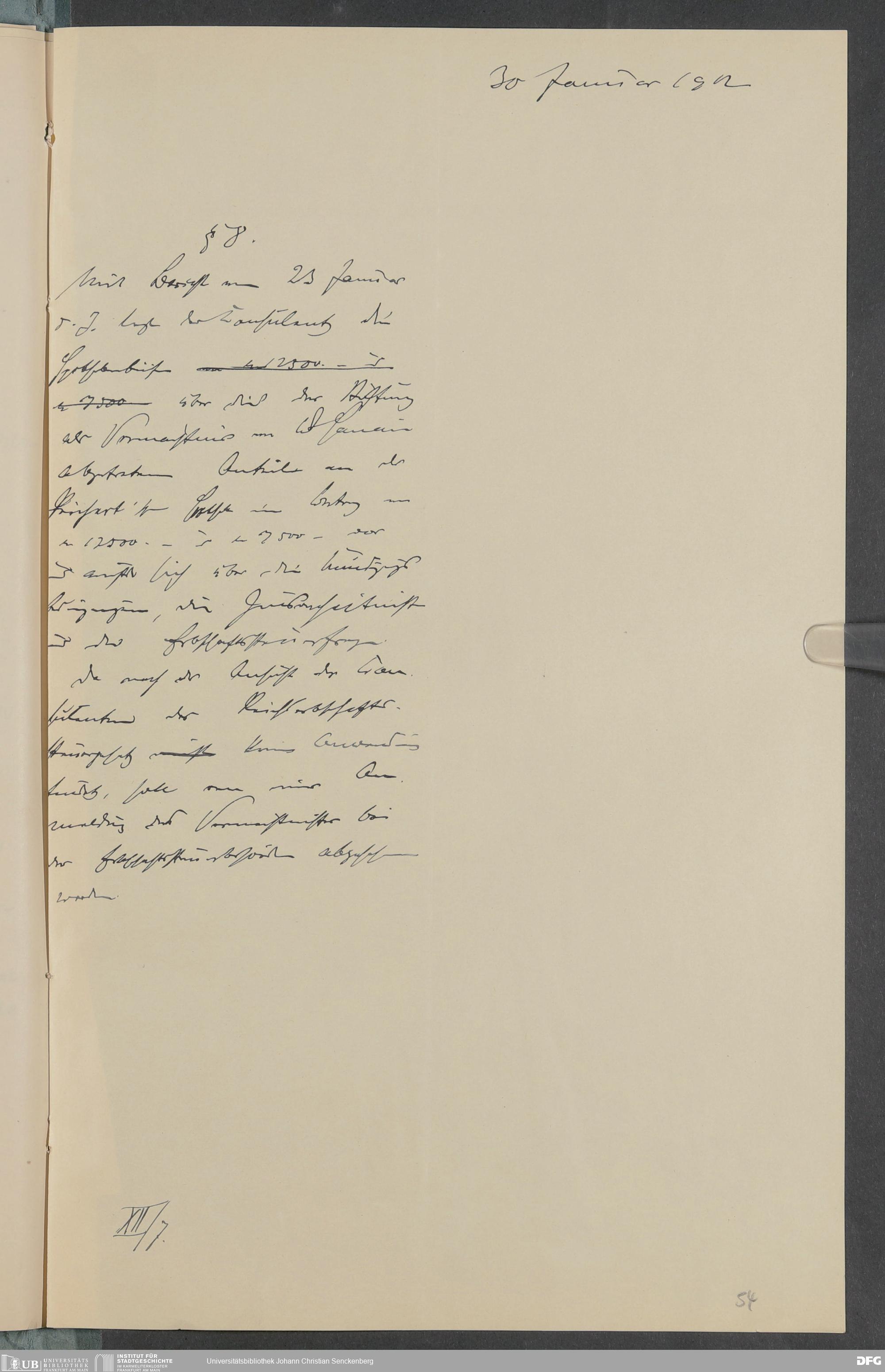 V48 Dr. Senckenbergische Stiftung, 378 - Vermächtnis von Dr. med. Arthur Hanau für das Senckenbergische Pathologische Institut