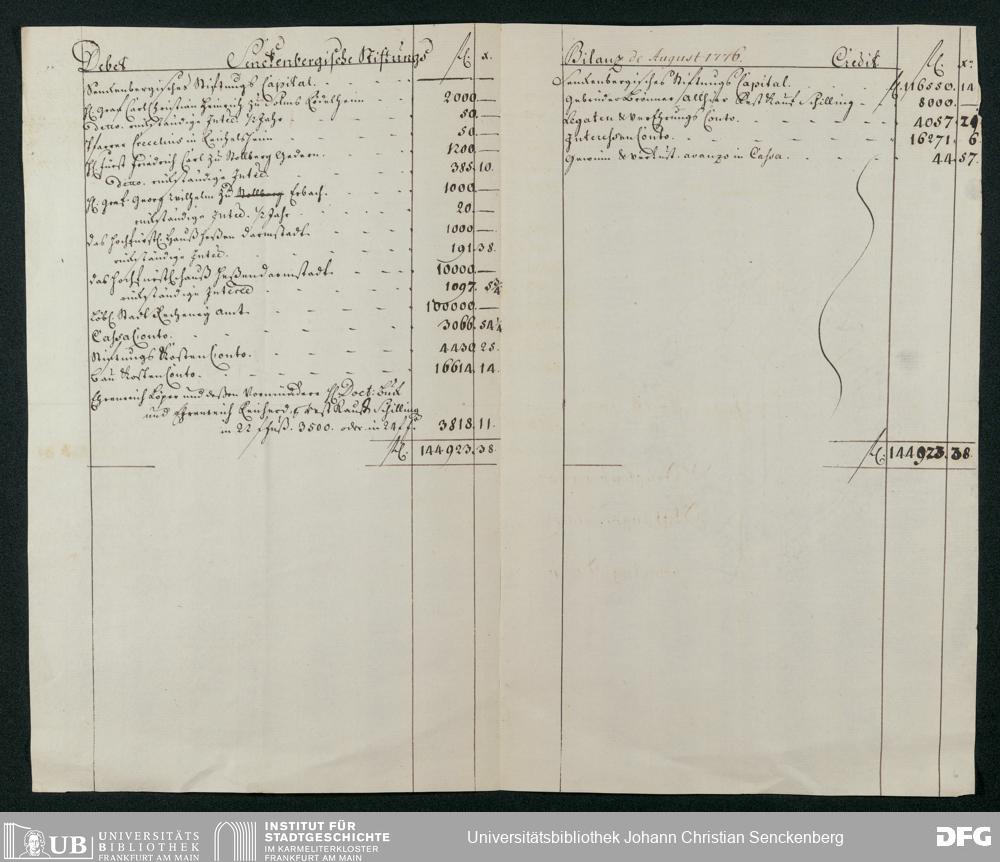 V48 Dr. Senckenbergische Stiftung, 431 - Bilanzen der Dr. Senckenbergischen Stiftung 1774-1787