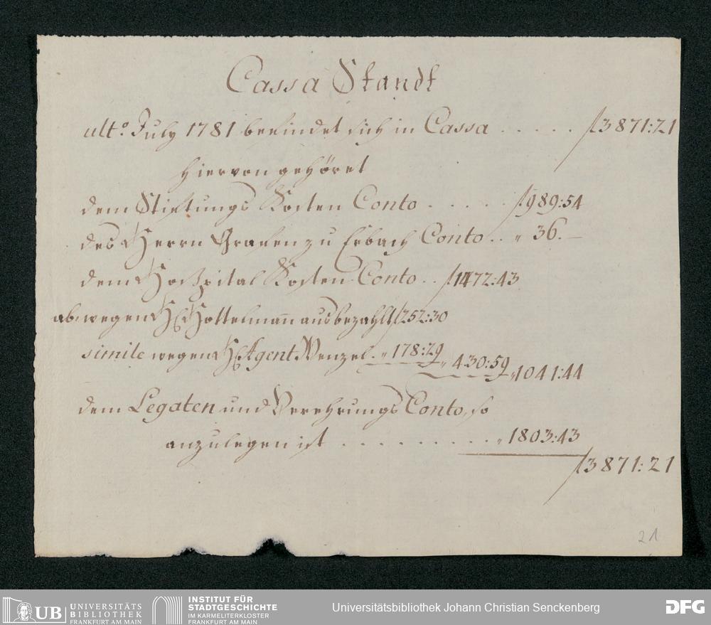 V48 Dr. Senckenbergische Stiftung, 431 - Bilanzen der Dr. Senckenbergischen Stiftung 1774-1787
