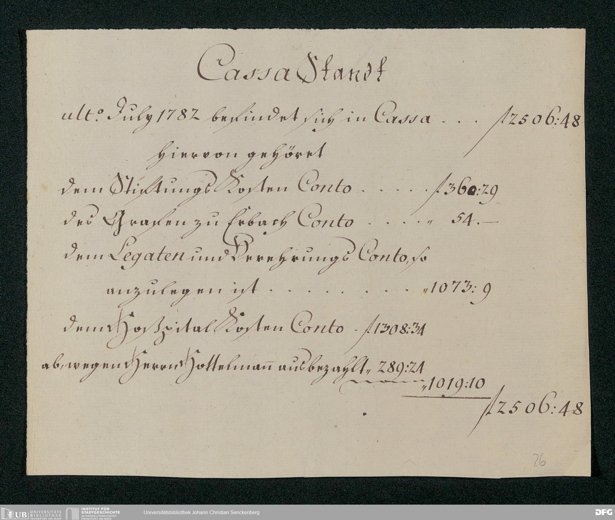 V48 Dr. Senckenbergische Stiftung, 431 - Bilanzen der Dr. Senckenbergischen Stiftung 1774-1787