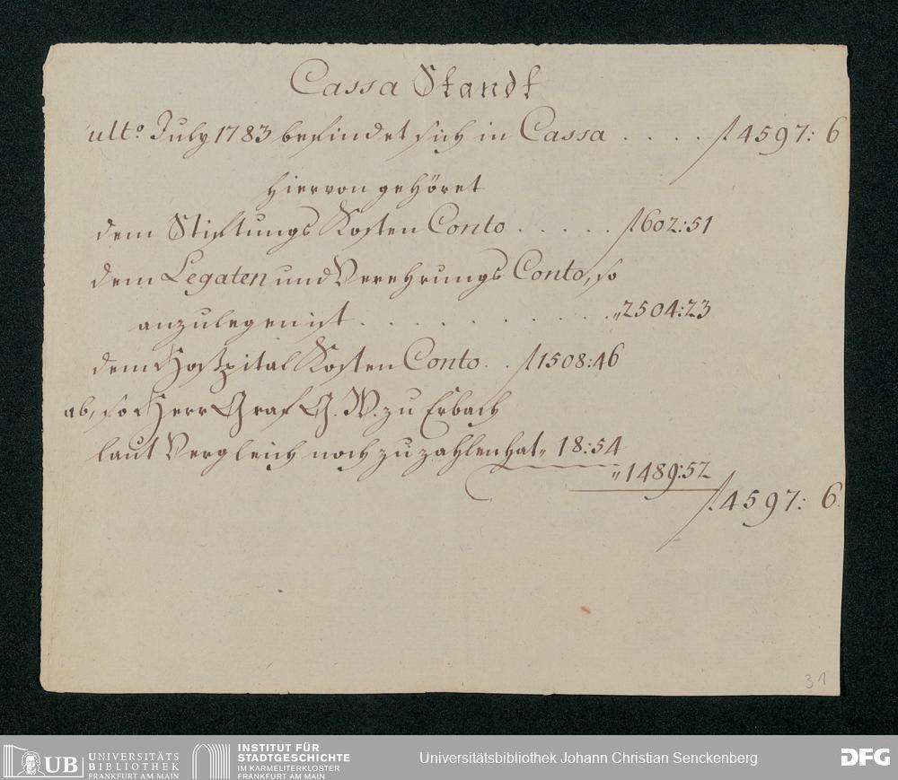 V48 Dr. Senckenbergische Stiftung, 431 - Bilanzen der Dr. Senckenbergischen Stiftung 1774-1787