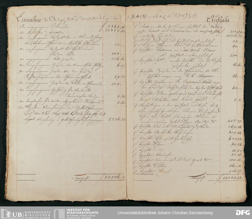 V48 Dr. Senckenbergische Stiftung, 431 - Bilanzen der Dr. Senckenbergischen Stiftung 1774-1787