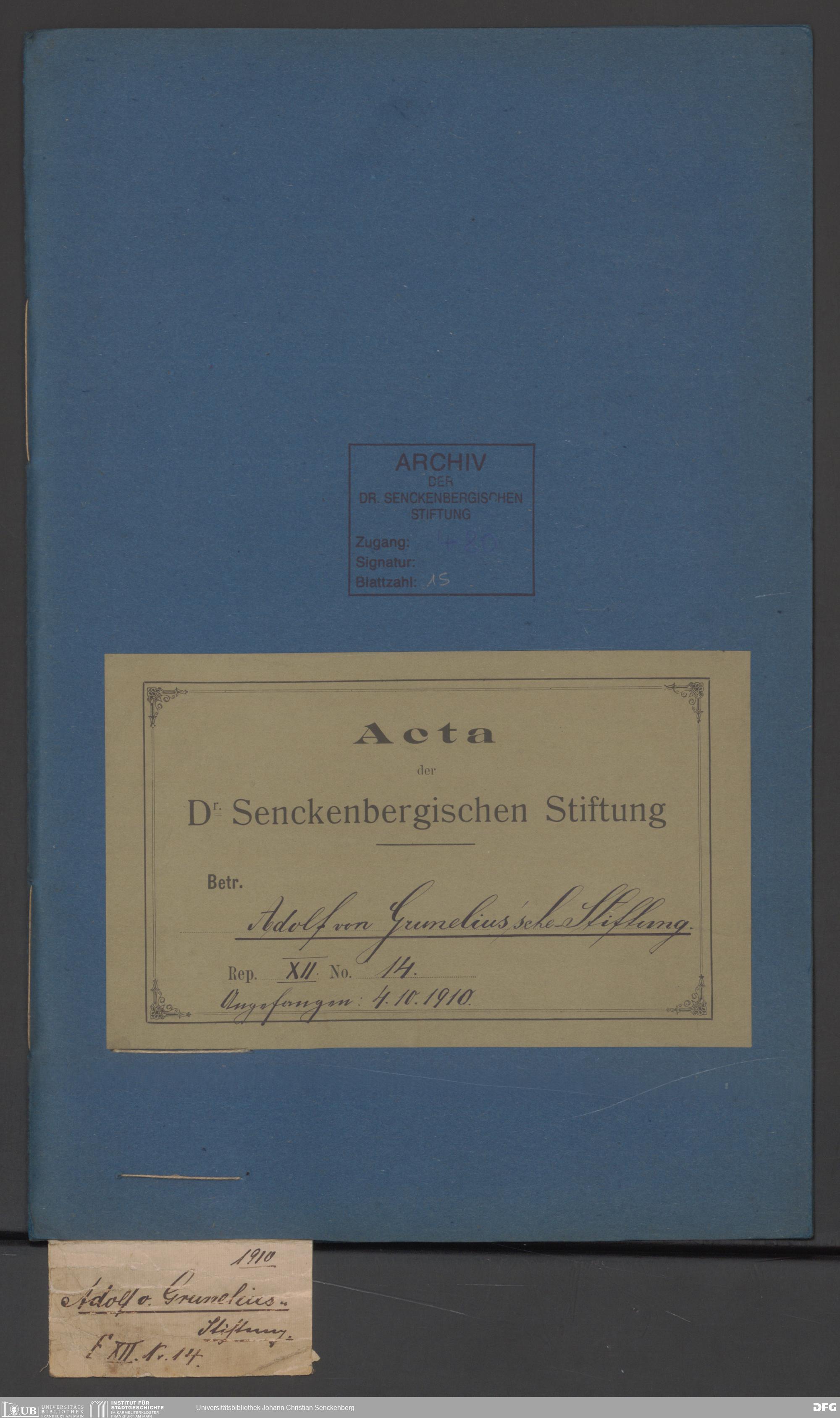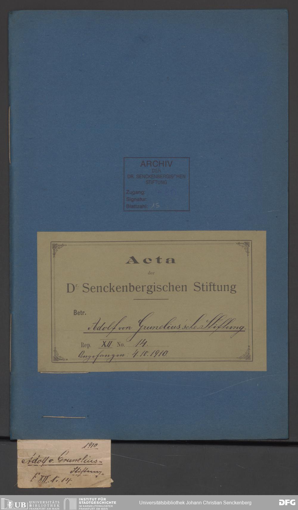 V48 Dr. Senckenbergische Stiftung, 480 - Grunelius-Stiftung