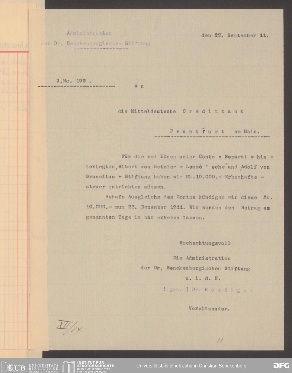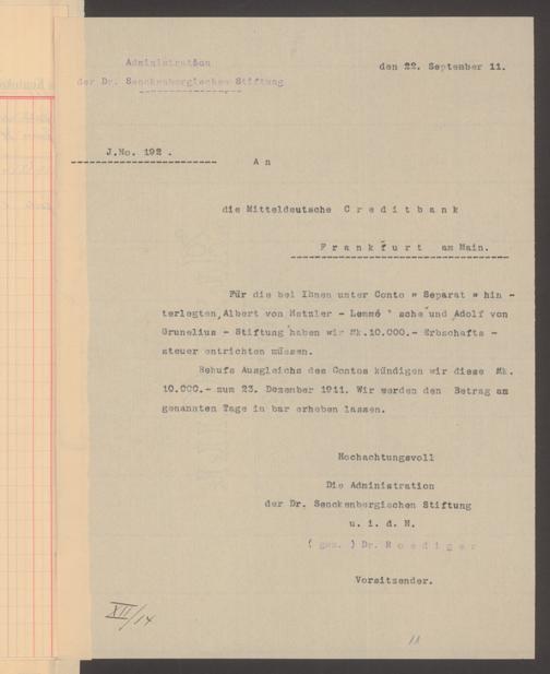 V48 Dr. Senckenbergische Stiftung, 480 - Grunelius-Stiftung