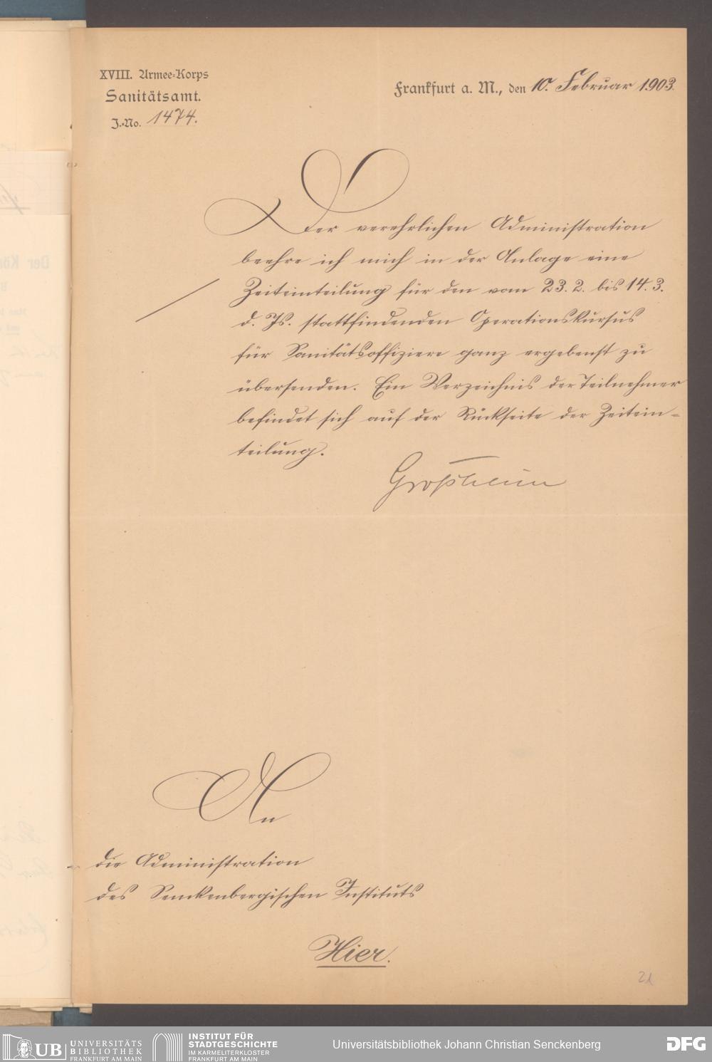 V48 Dr. Senckenbergische Stiftung, 482 - 18. Armeekorps