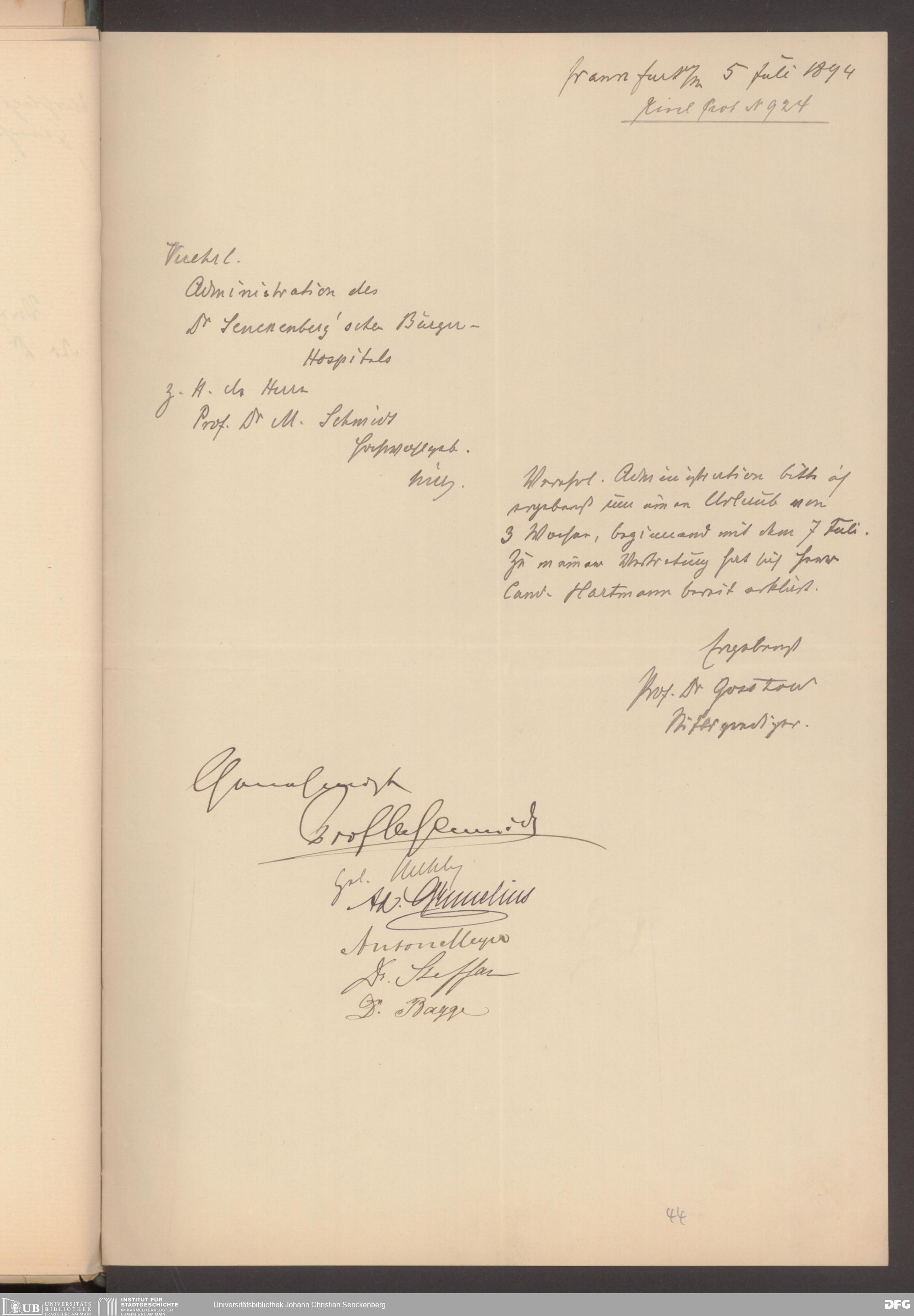 V48 Dr. Senckenbergische Stiftung, 484 - Tätigkeit des Hospitalpredigers