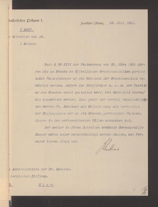 V48 Dr. Senckenbergische Stiftung, 489 - Postvollmachten der Senckenbergischen Institute