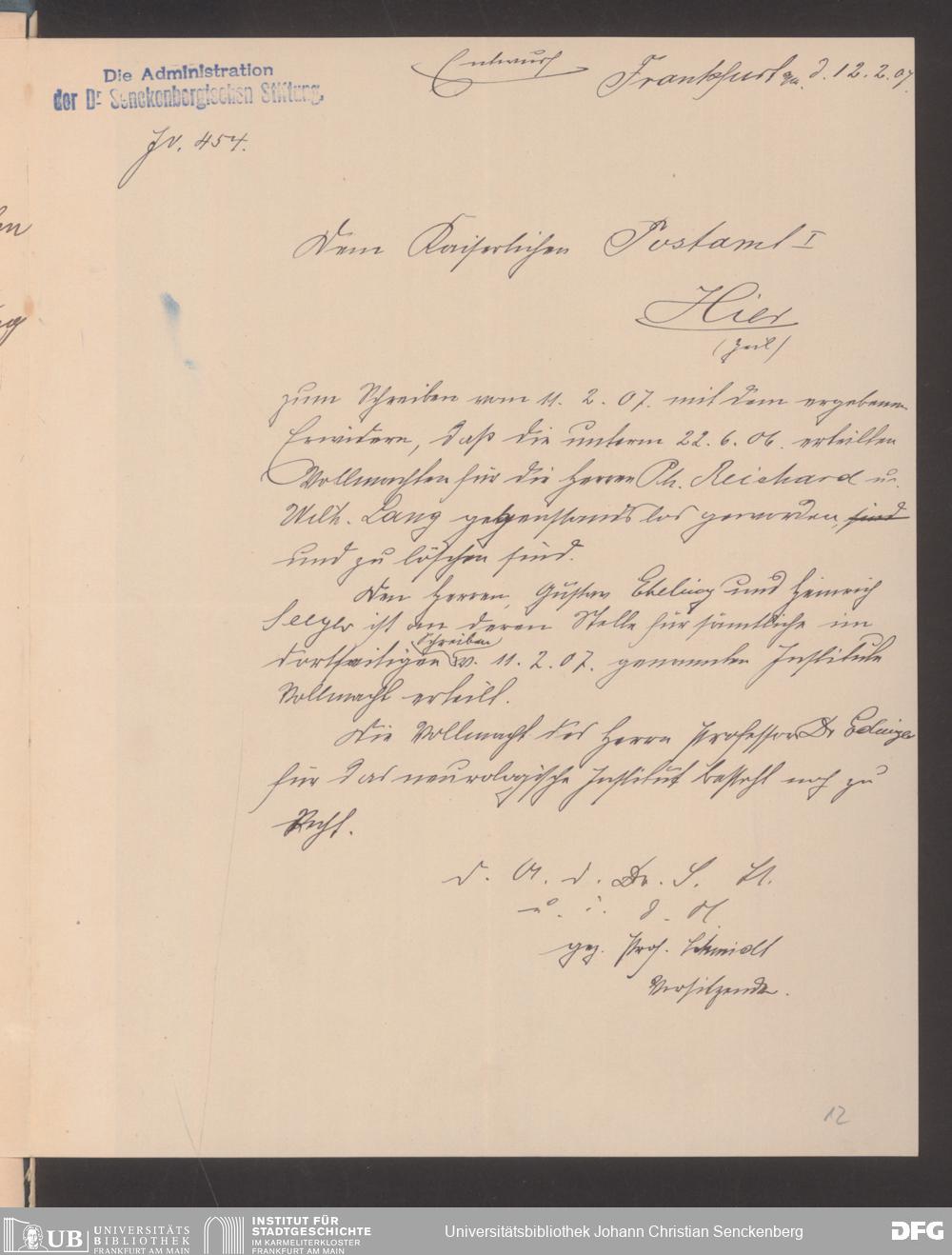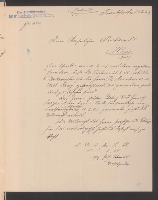 V48 Dr. Senckenbergische Stiftung, 489 - Postvollmachten der Senckenbergischen Institute
