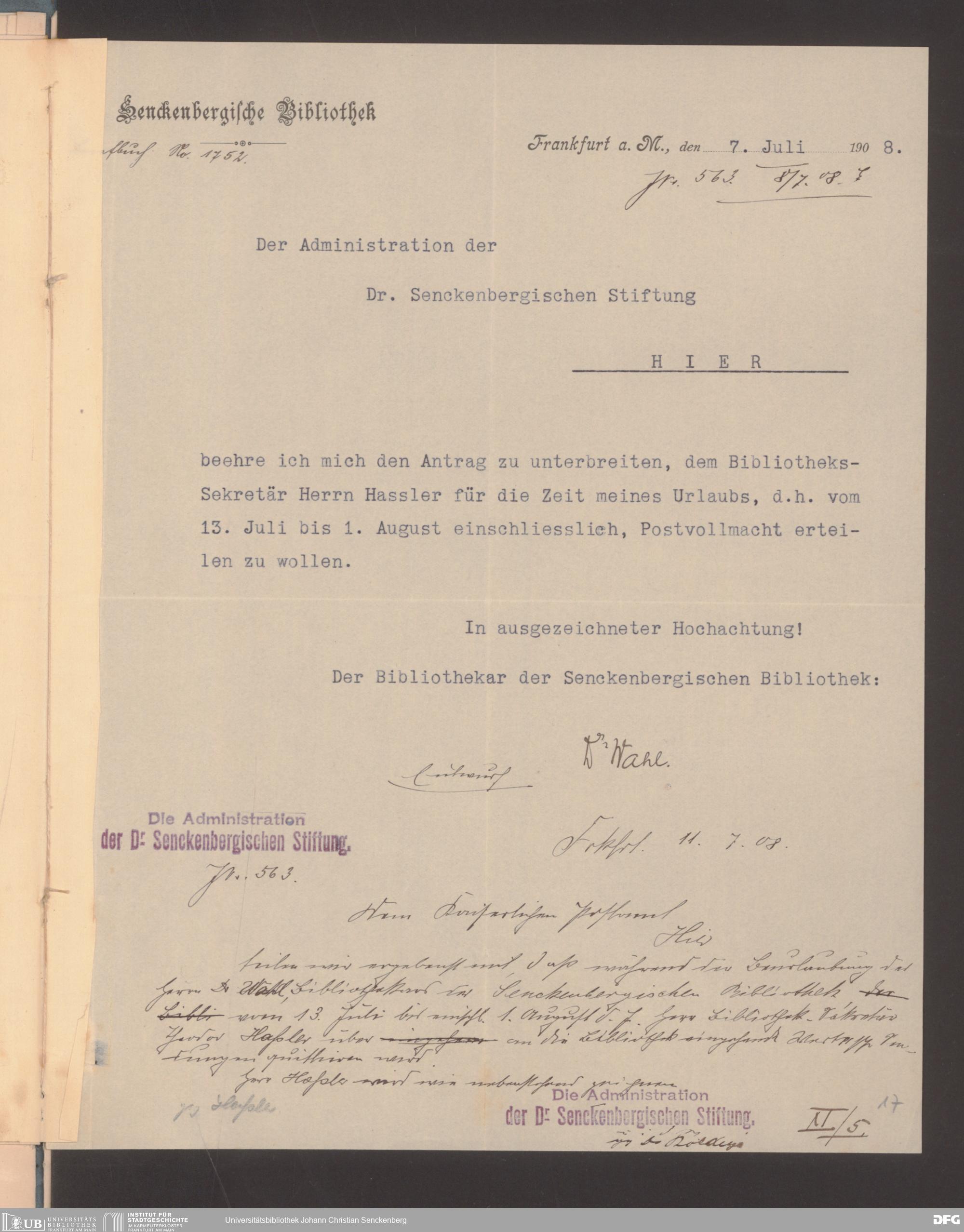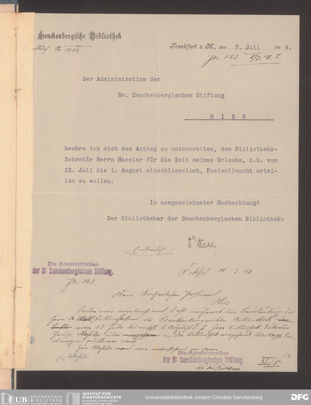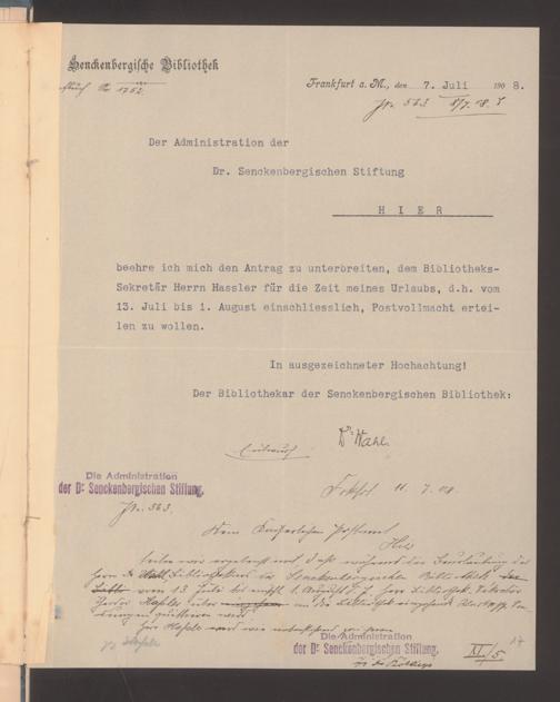 V48 Dr. Senckenbergische Stiftung, 489 - Postvollmachten der Senckenbergischen Institute