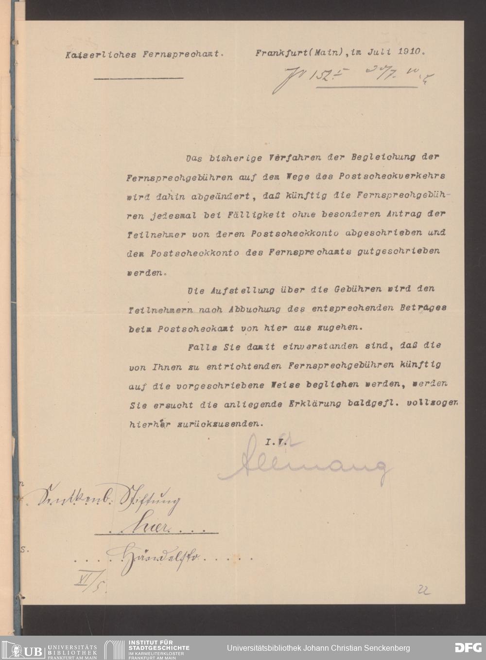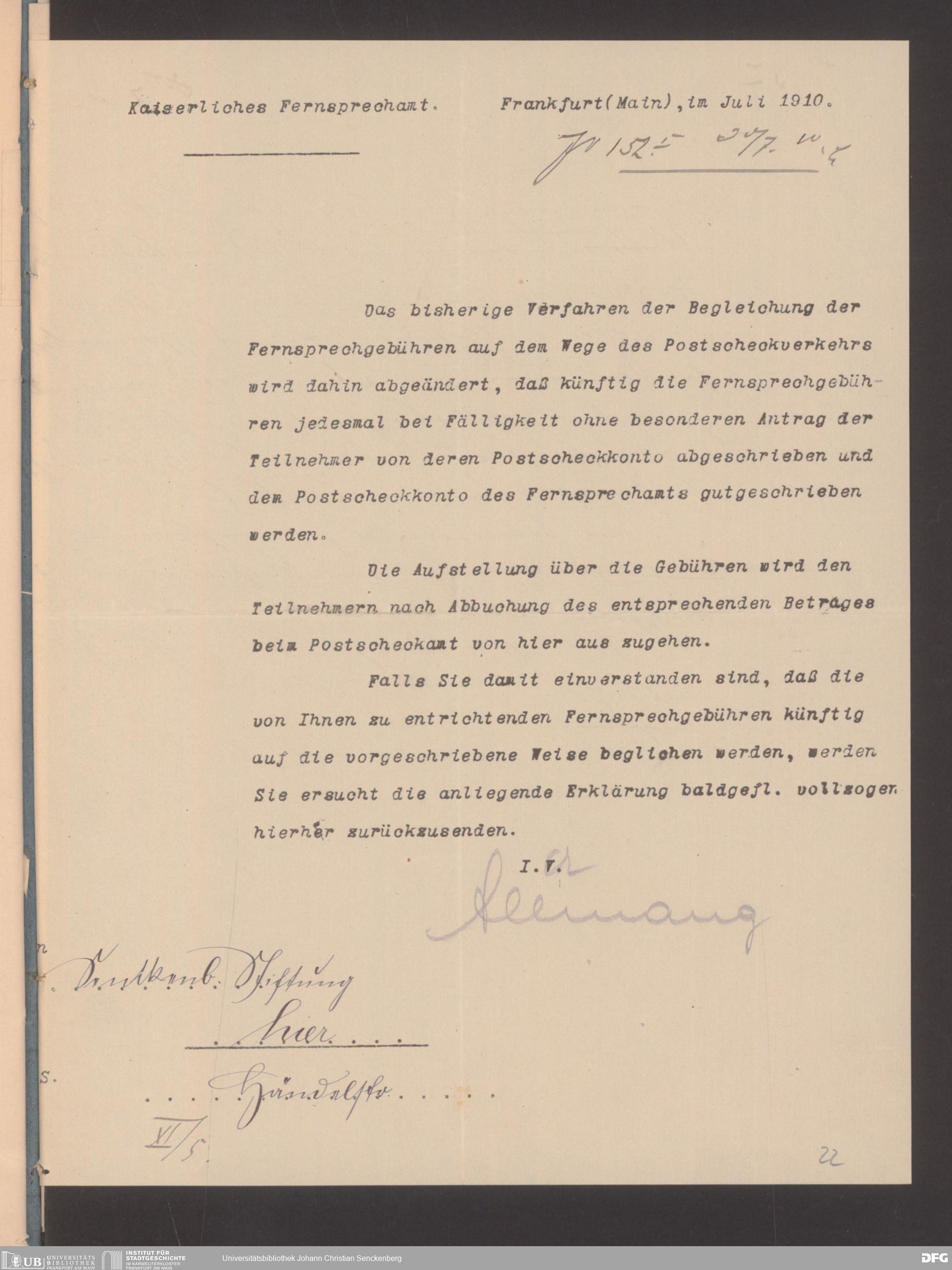 V48 Dr. Senckenbergische Stiftung, 489 - Postvollmachten der Senckenbergischen Institute