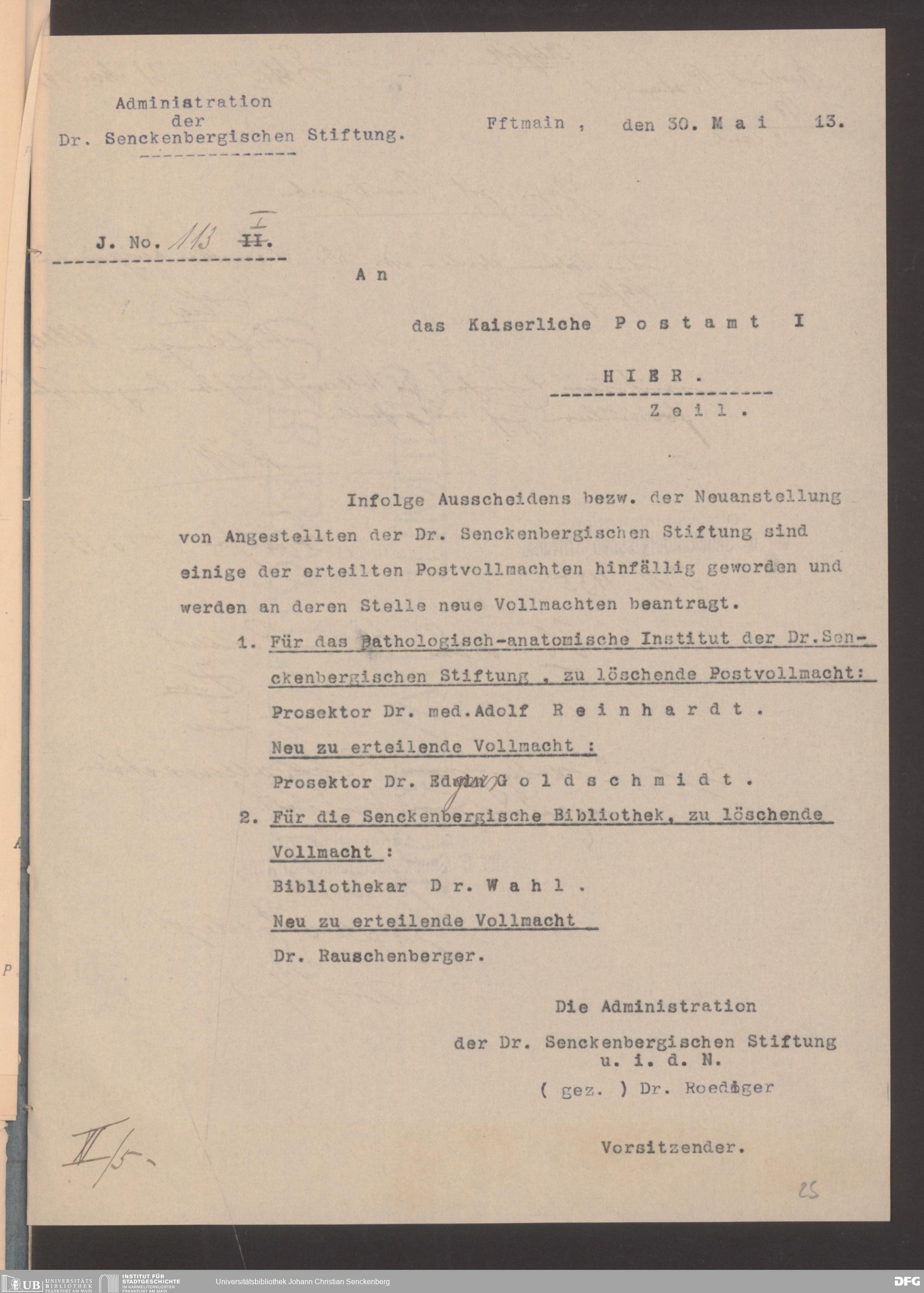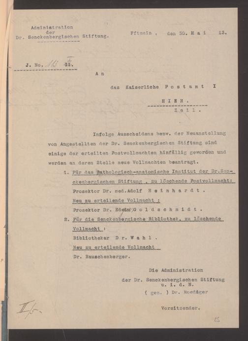 V48 Dr. Senckenbergische Stiftung, 489 - Postvollmachten der Senckenbergischen Institute