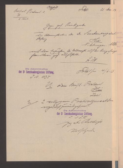 V48 Dr. Senckenbergische Stiftung, 489 - Postvollmachten der Senckenbergischen Institute