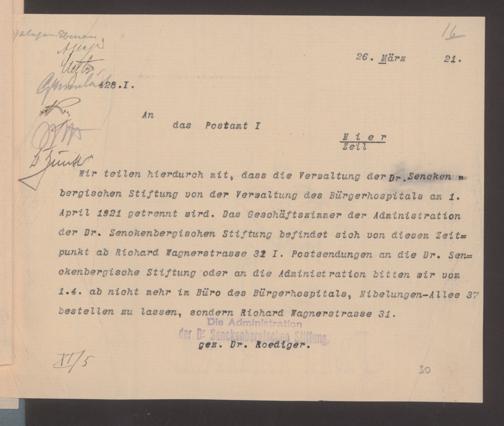 V48 Dr. Senckenbergische Stiftung, 489 - Postvollmachten der Senckenbergischen Institute
