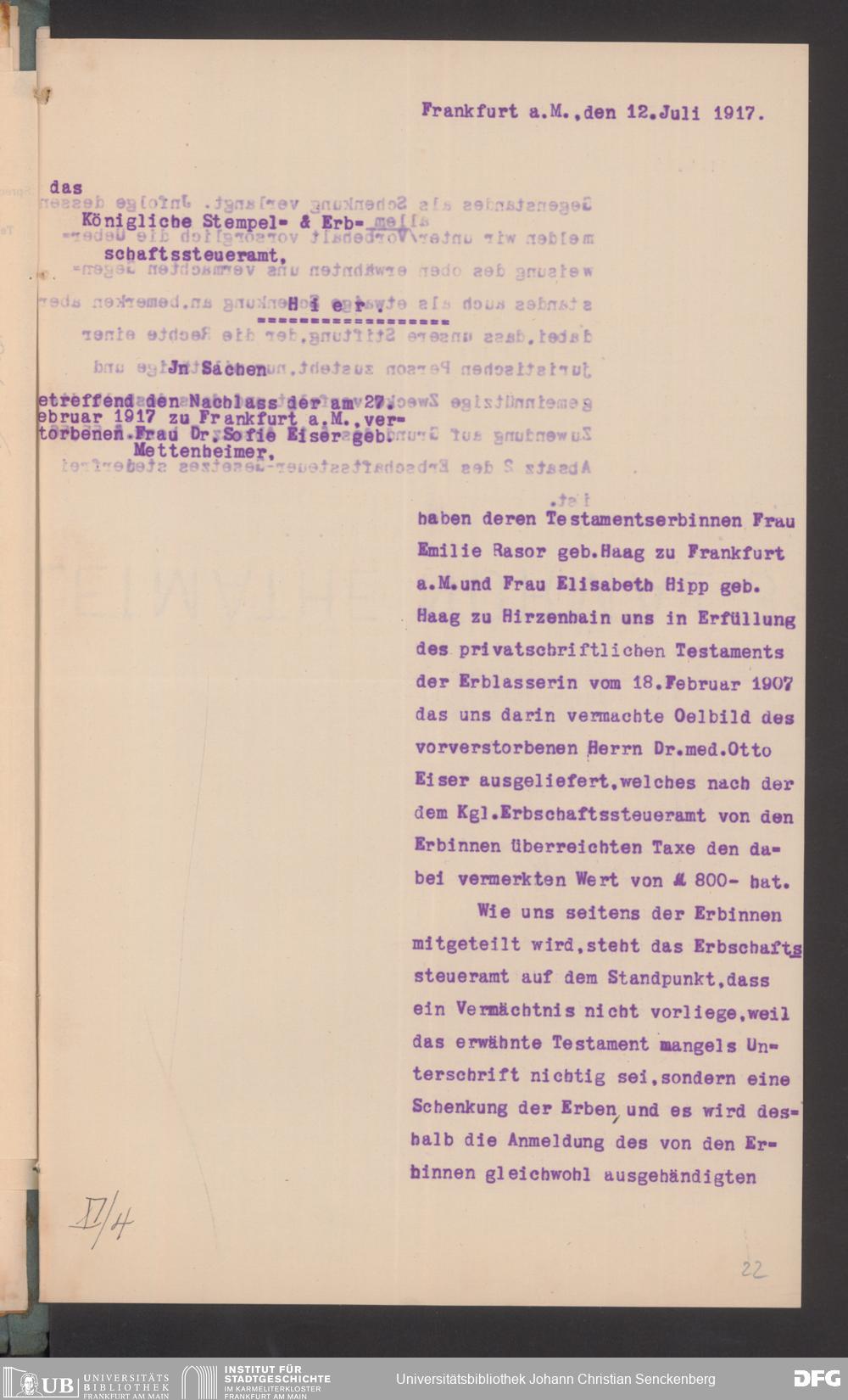 V48 Dr. Senckenbergische Stiftung, 490 - Erbschaftssteuer