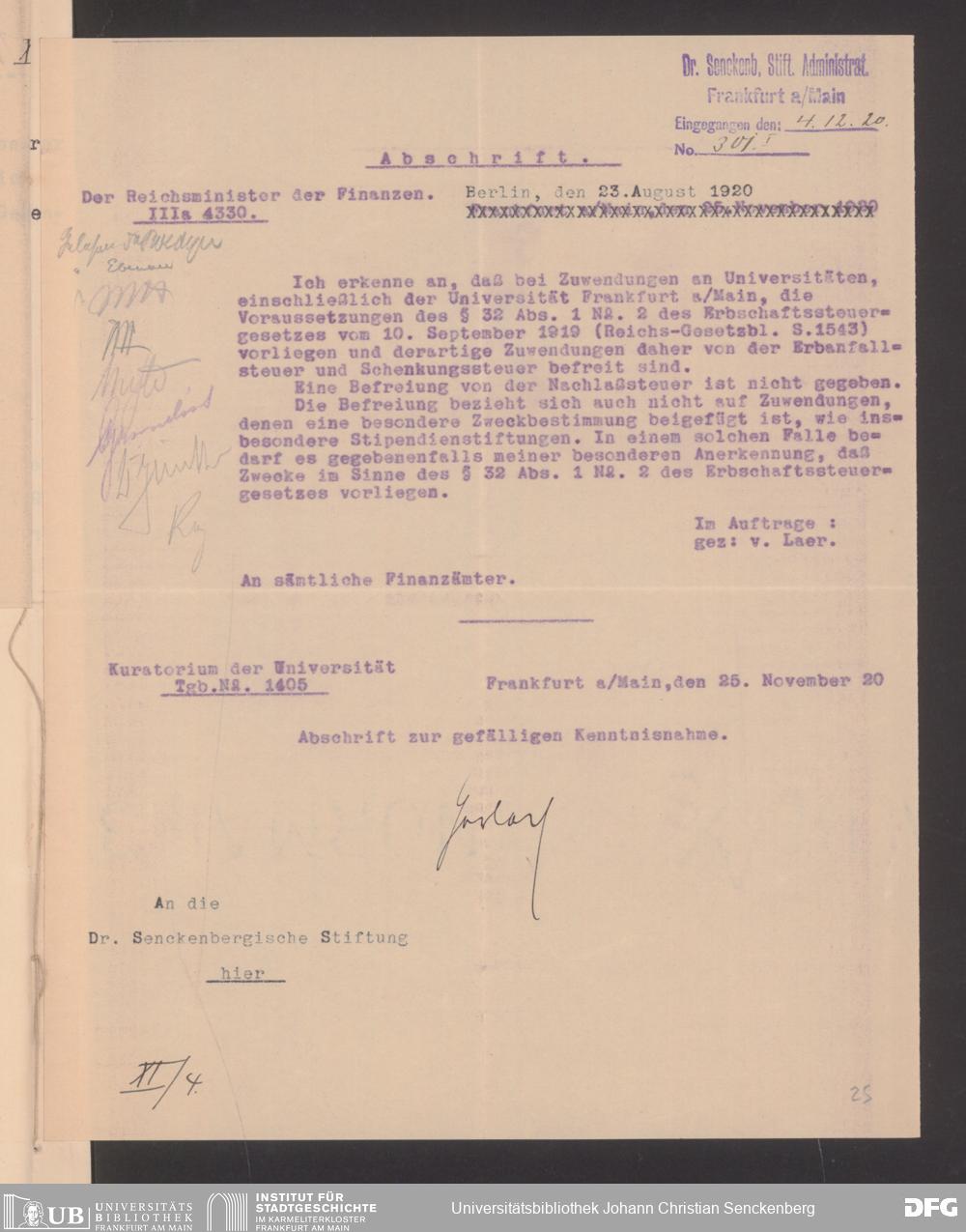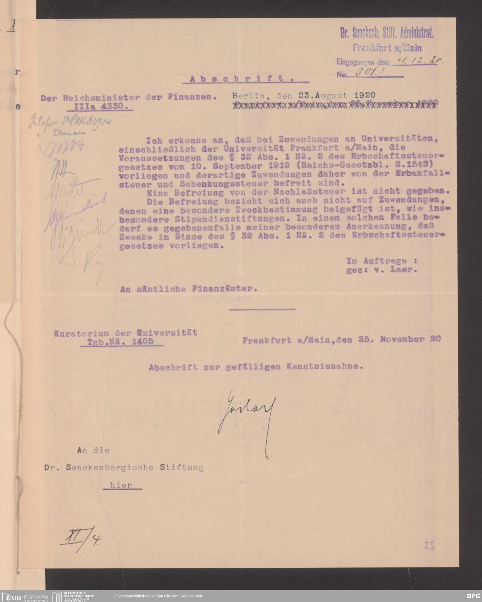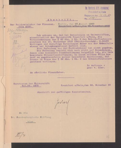 V48 Dr. Senckenbergische Stiftung, 490 - Erbschaftssteuer