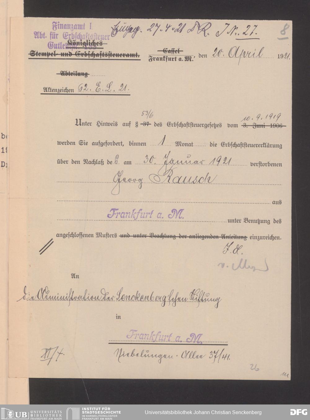 V48 Dr. Senckenbergische Stiftung, 490 - Erbschaftssteuer