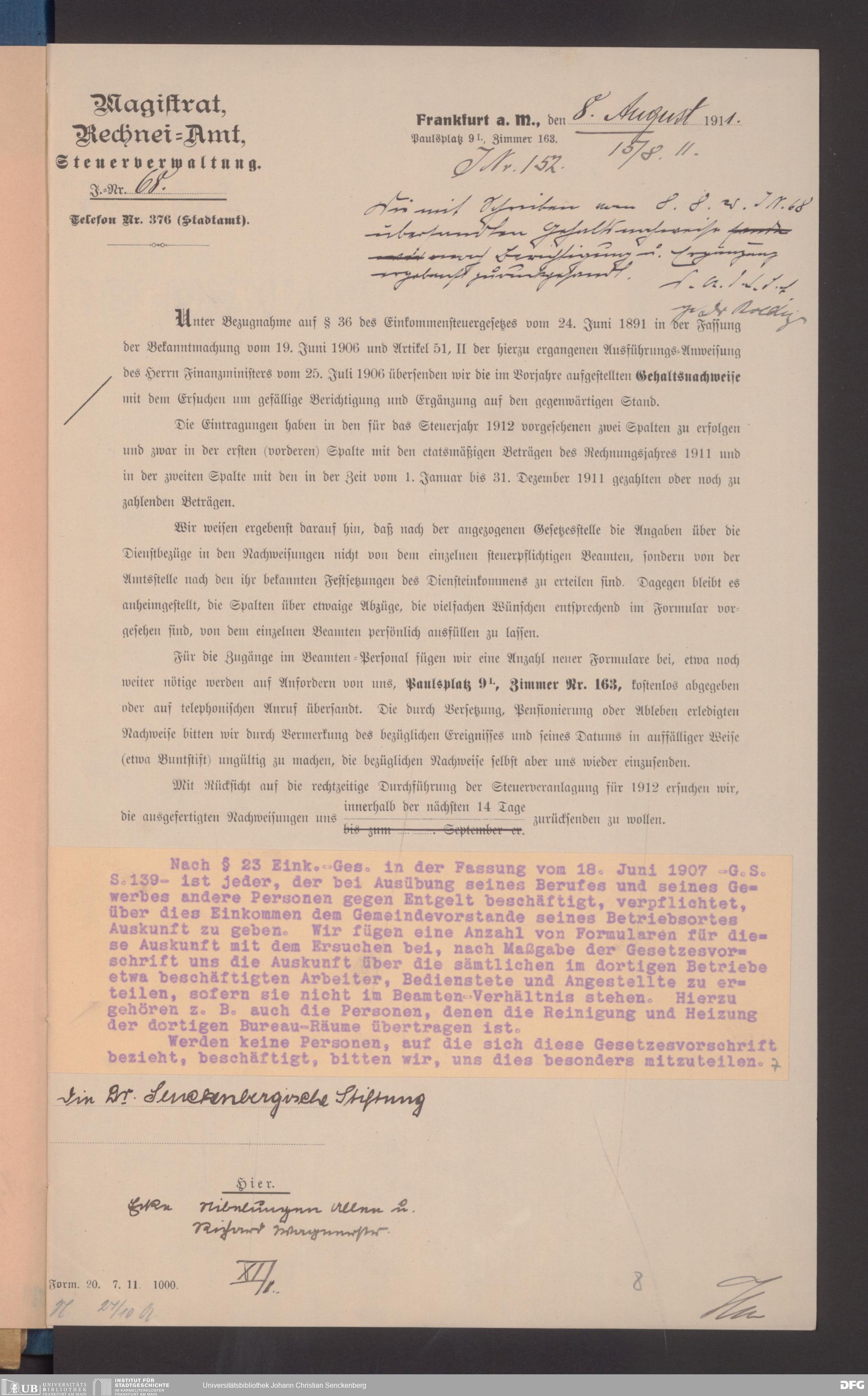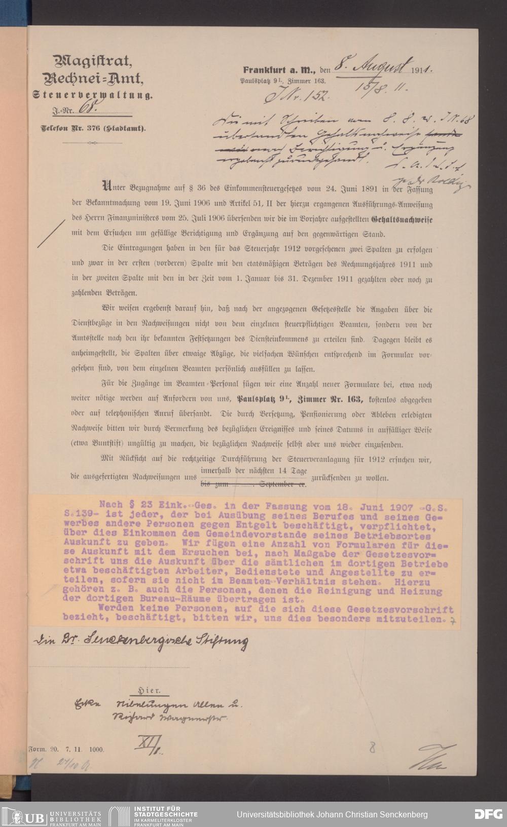 V48 Dr. Senckenbergische Stiftung, 491 - Rechneiamt