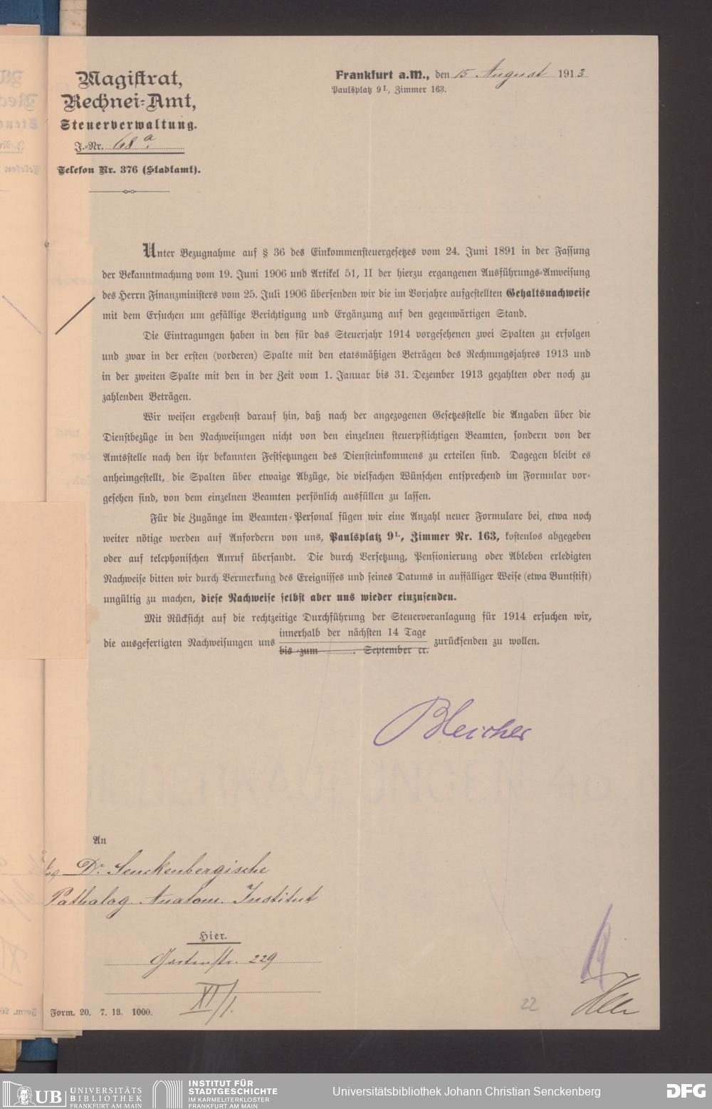 V48 Dr. Senckenbergische Stiftung, 491 - Rechneiamt