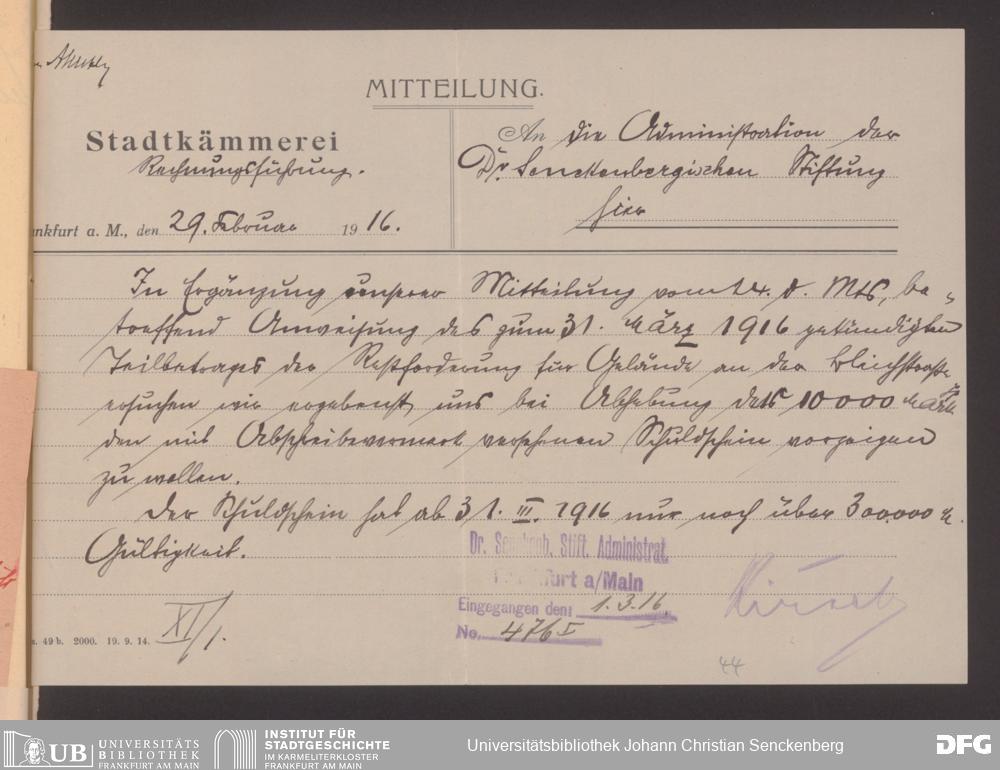 V48 Dr. Senckenbergische Stiftung, 491 - Rechneiamt