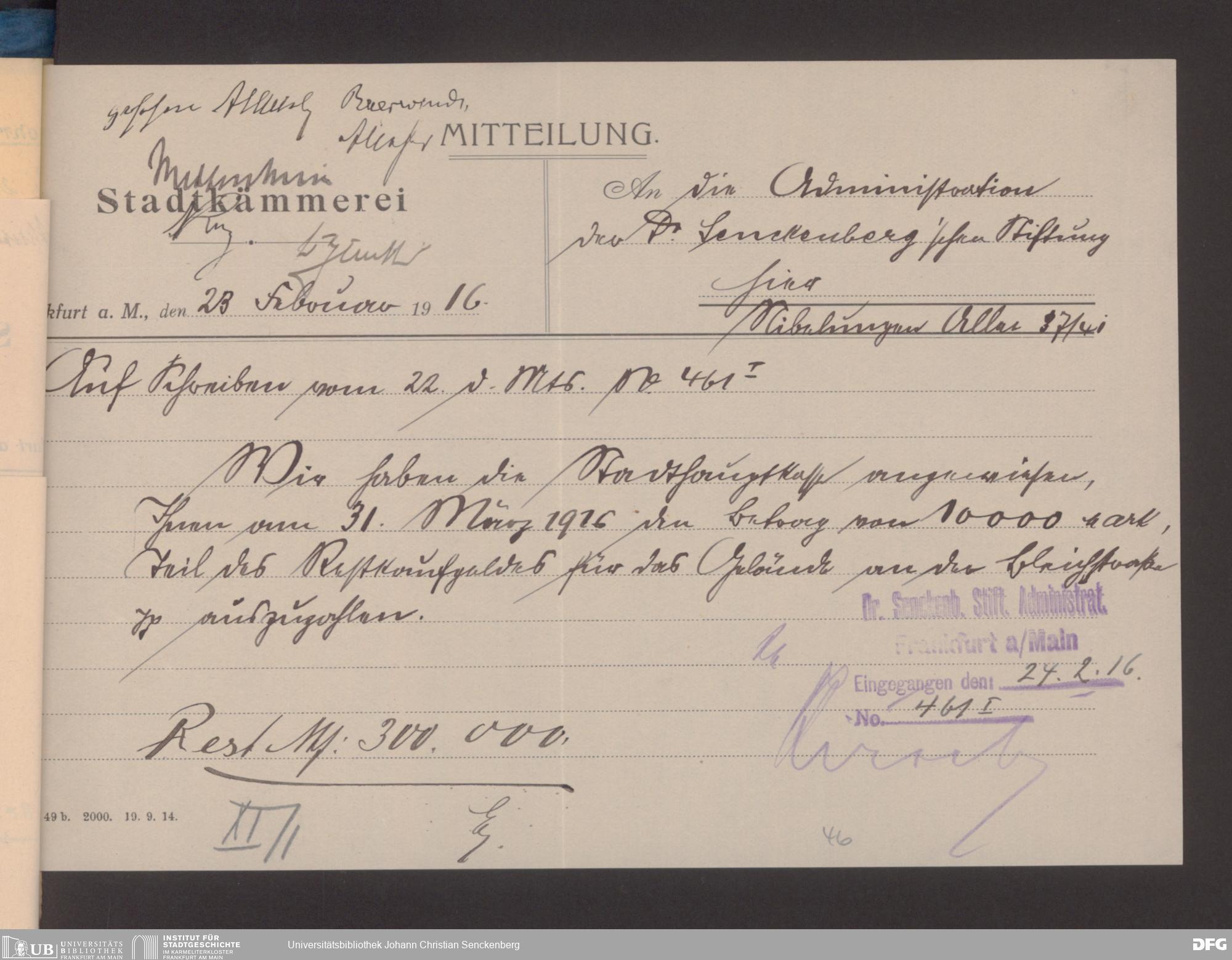 V48 Dr. Senckenbergische Stiftung, 491 - Rechneiamt