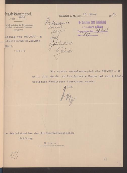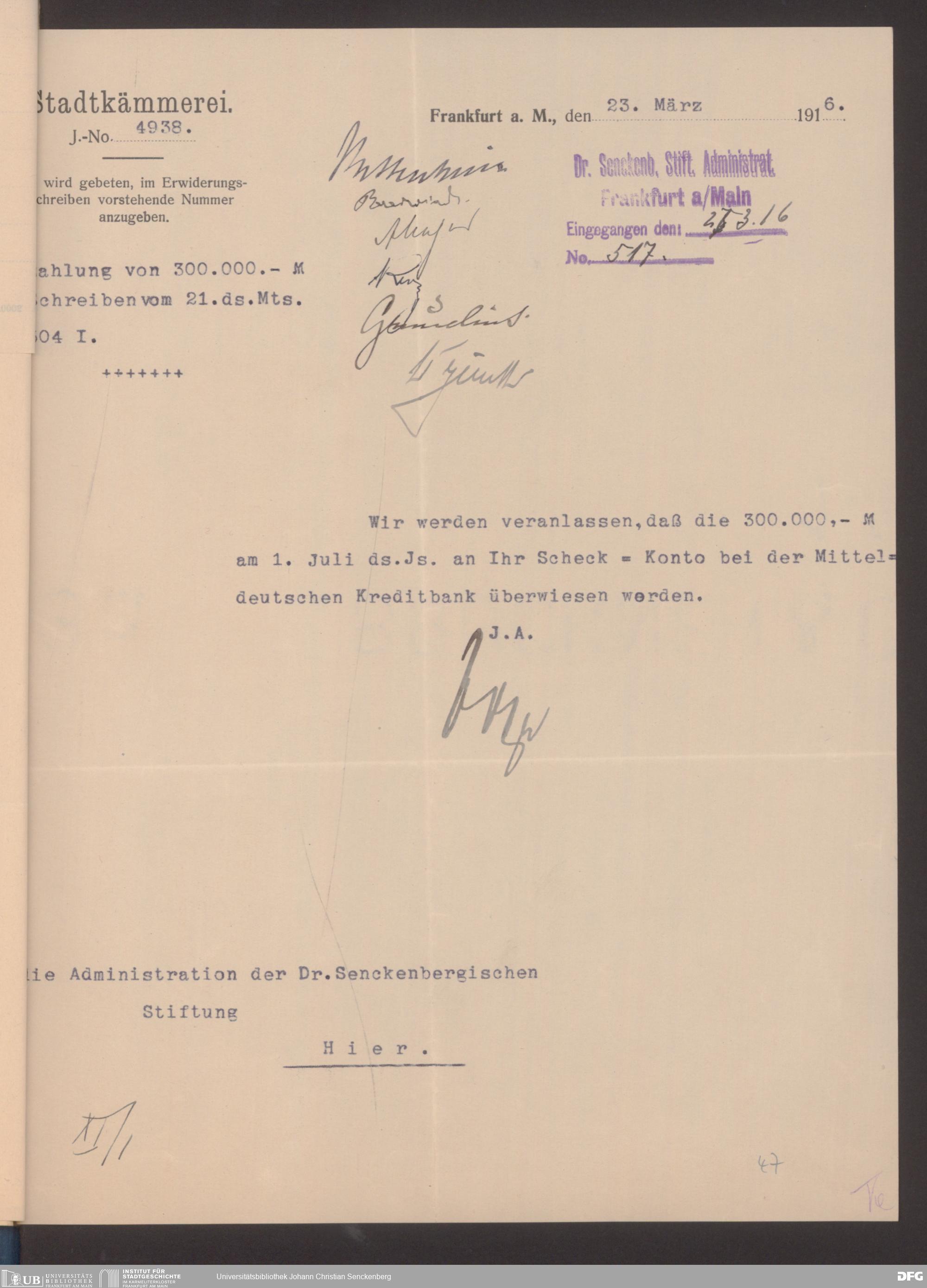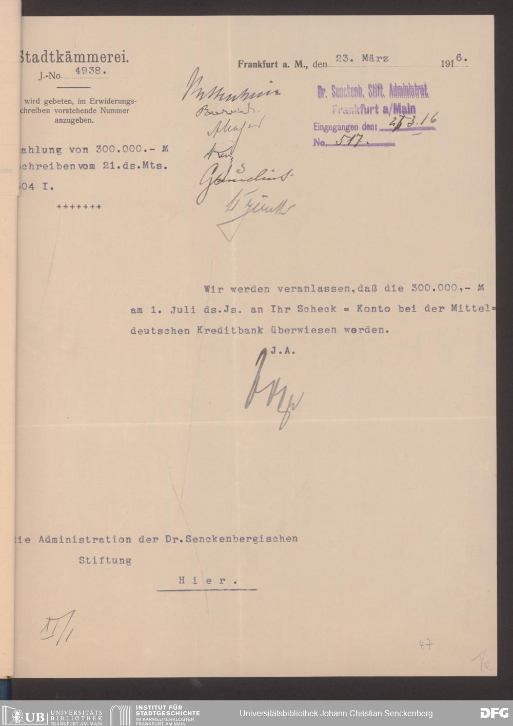 V48 Dr. Senckenbergische Stiftung, 491 - Rechneiamt