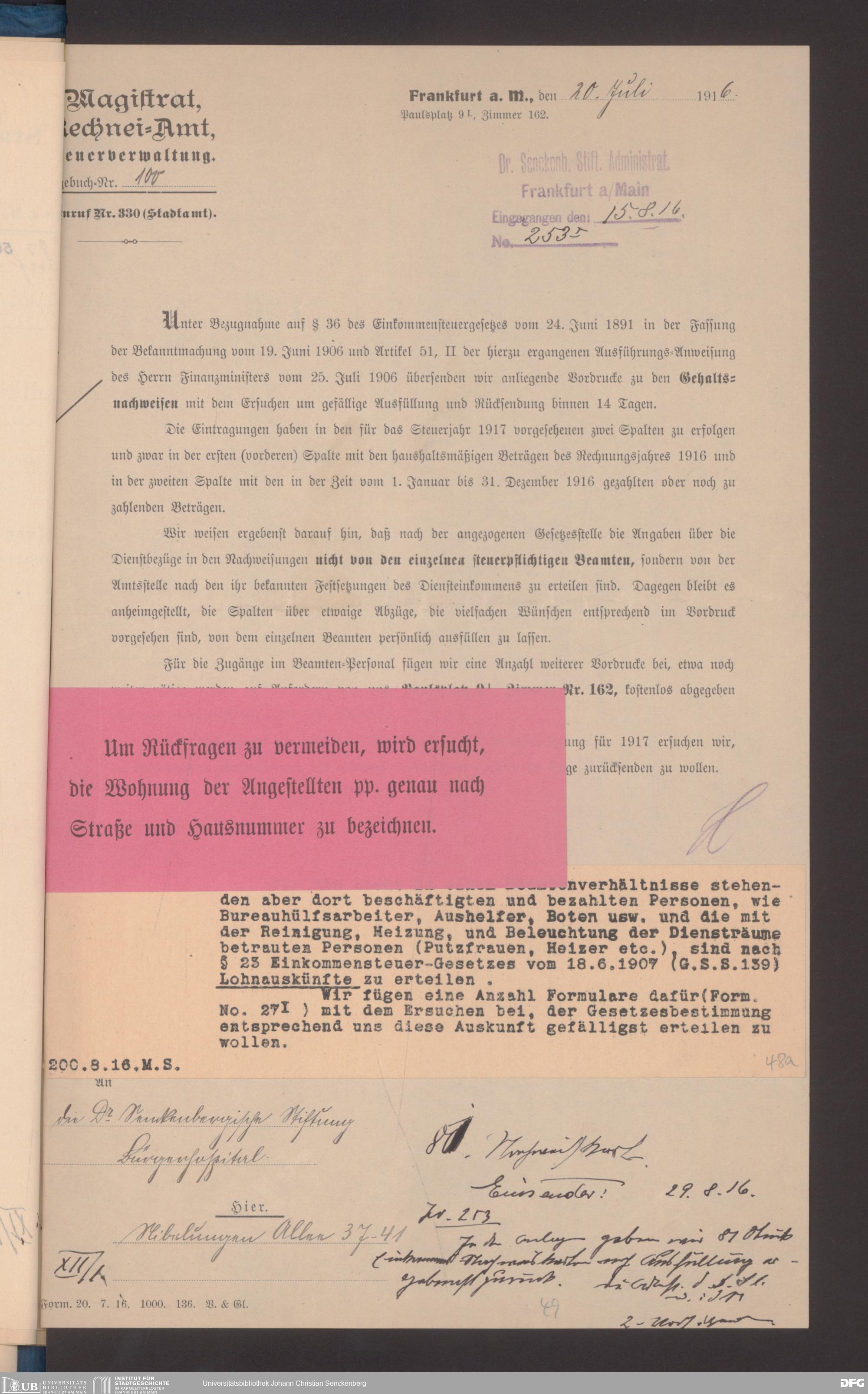 V48 Dr. Senckenbergische Stiftung, 491 - Rechneiamt