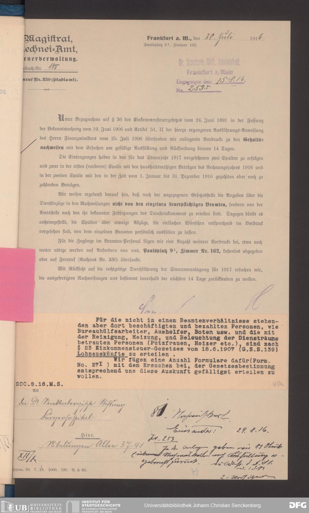 V48 Dr. Senckenbergische Stiftung, 491 - Rechneiamt